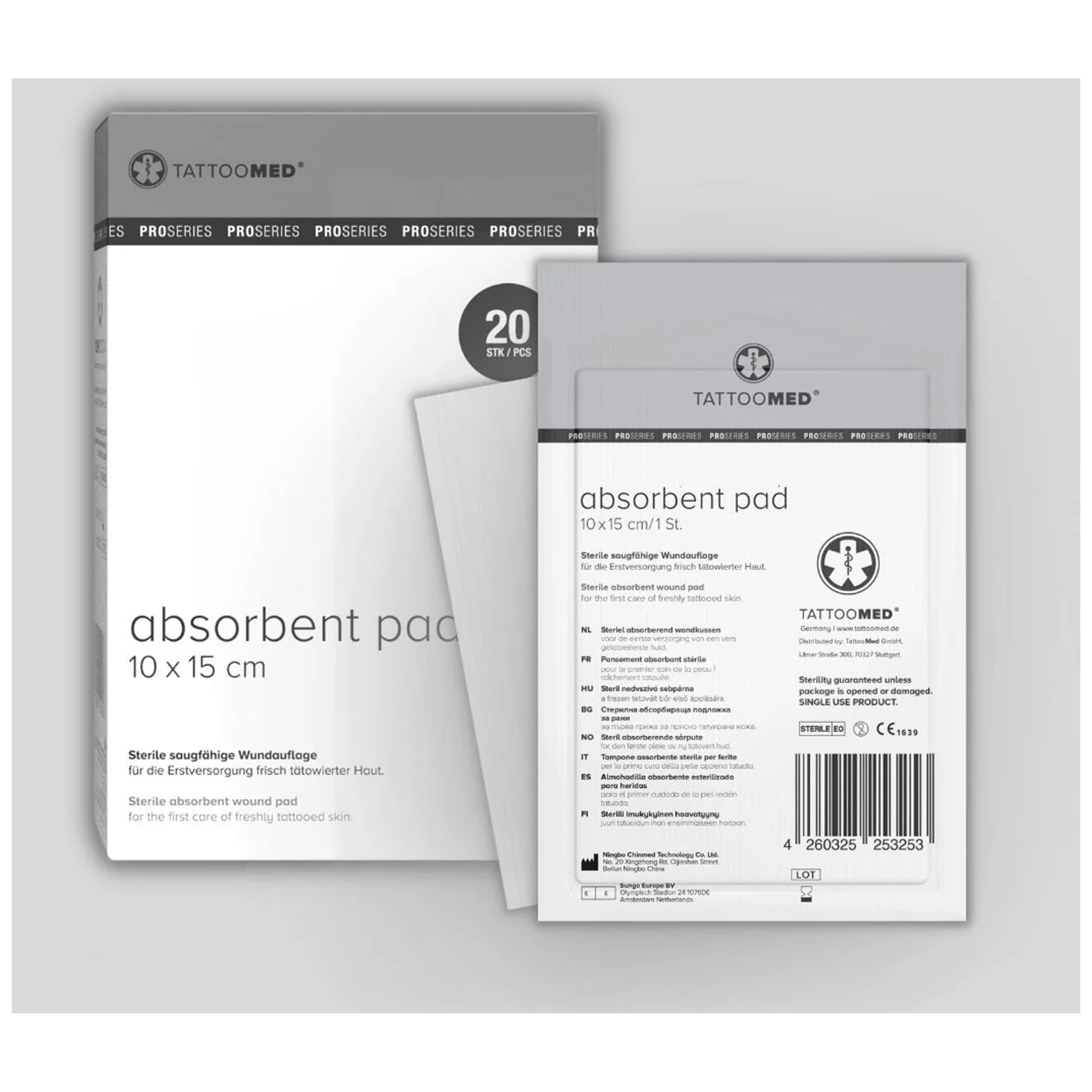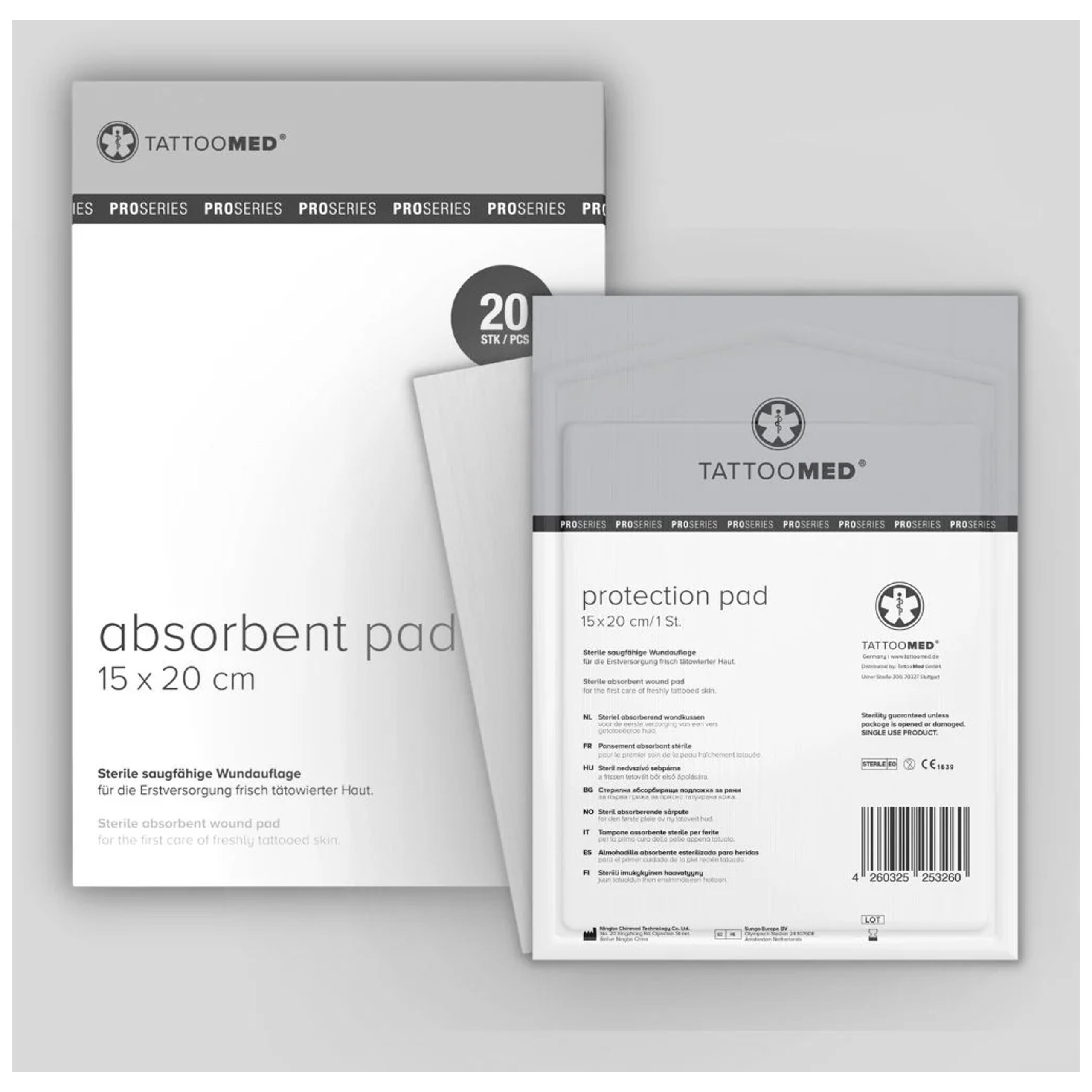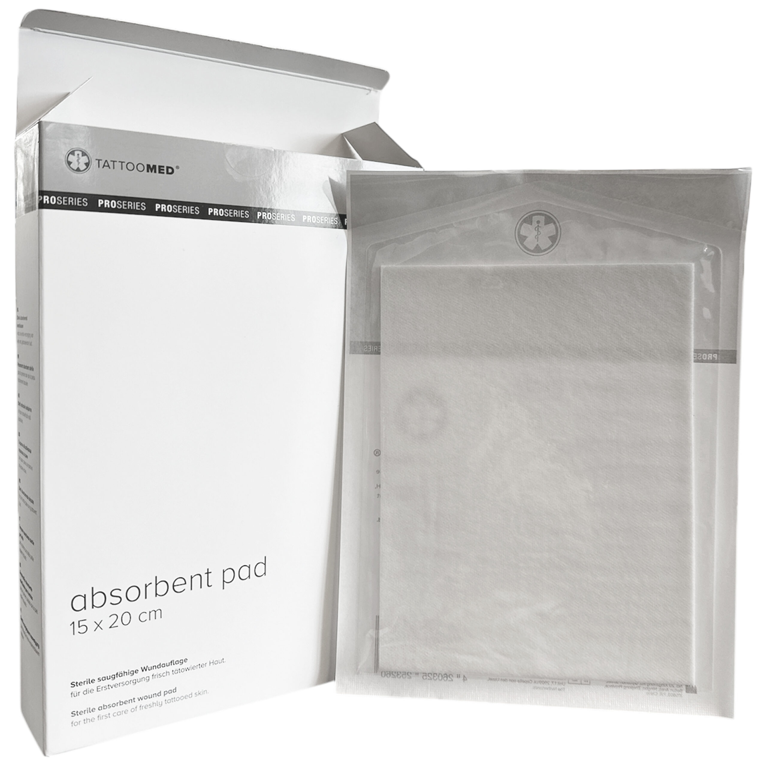 Nuestro producto de la Pro Series, el TattooMed Absorbent Pad, ofrece la función ideal para apoyar la piel en este tiempo complicado y arriesgado. Gracias a su tejido especial de celulosa de algodón, que garantiza una absorción óptima, se capturan los restos de tinta y los fluidos de la herida, además de prevenir un secado excesivo, siendo una excelente alternativa para personas alérgicas.