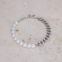 Ya sea que quieras darle un toque a tu street style urbano o añadir ese algo especial a tu look elegante de noche, nuestro Chunky Pearl Bracelet es la elección definitiva.