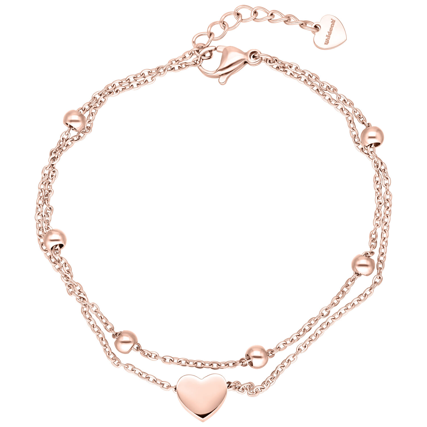 Esta pulsera de varias filas es perfecta para tu look de capas. Las diferentes cadenas de acero inoxidable combinadas con el brillante colgante de corazón llamarán la atención sí o sí. Da igual la ocasión: con ella estás lista para cualquier evento.