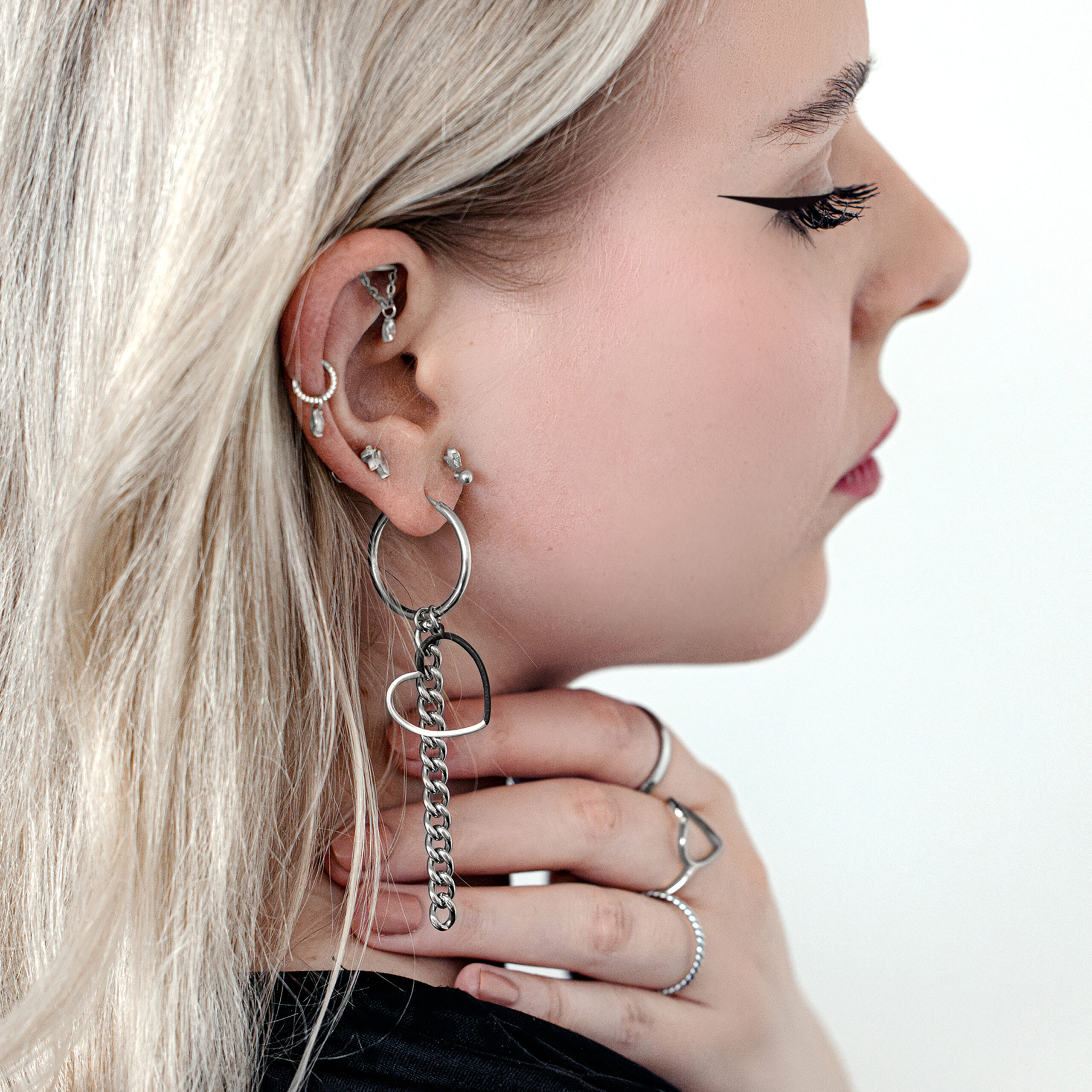 Tenemos la tendencia de joyería absoluta para ti. Estos grandes aros con atractivos complementos son muy fáciles de poner y se pueden combinar con cualquier atuendo. Ya sea rockero, místico, clásico, bohemio o elegante, aquí hay algo para todos. ¡Elige tus favoritos y destaca en todos los aspectos! Consejo: ¡también son utilizables en túneles!