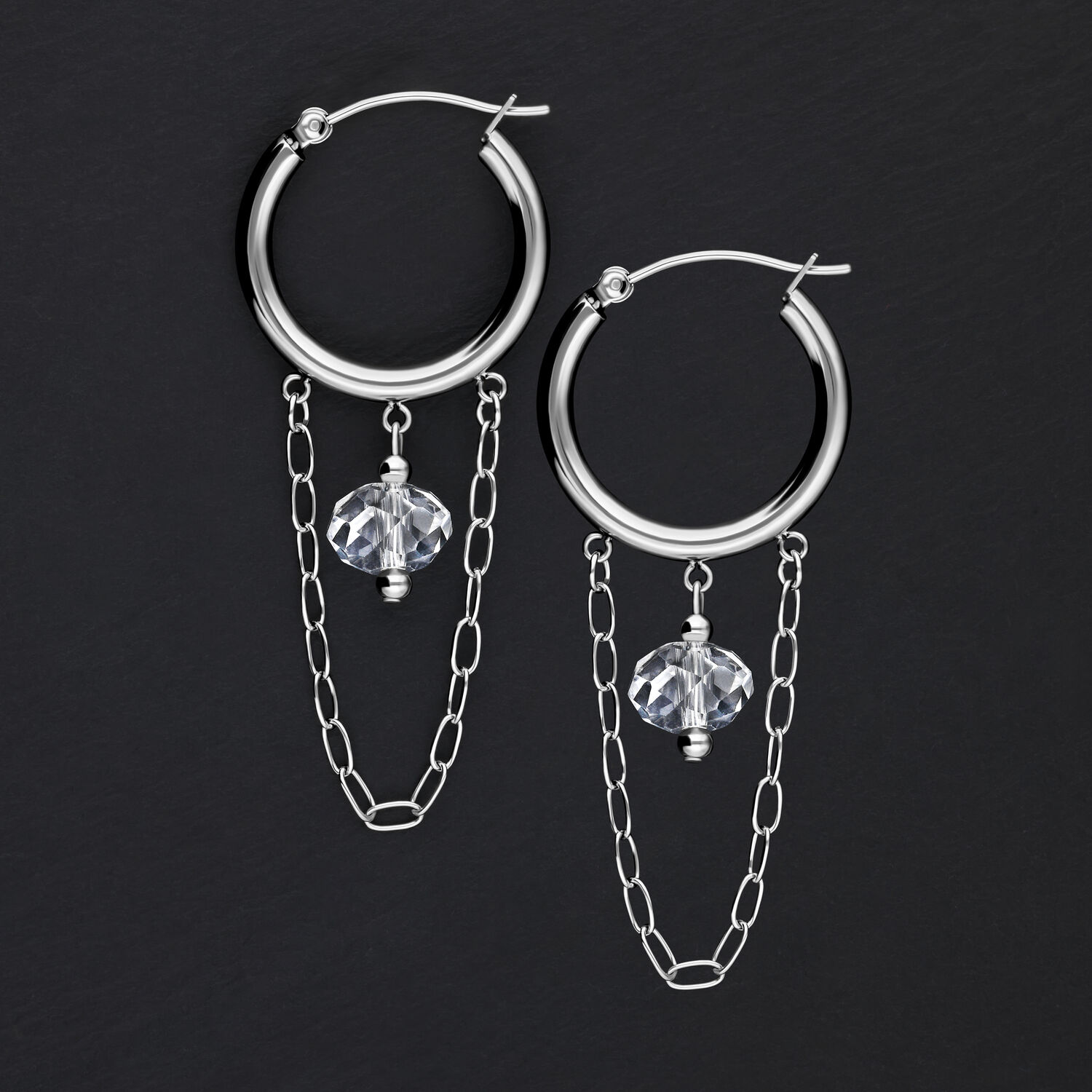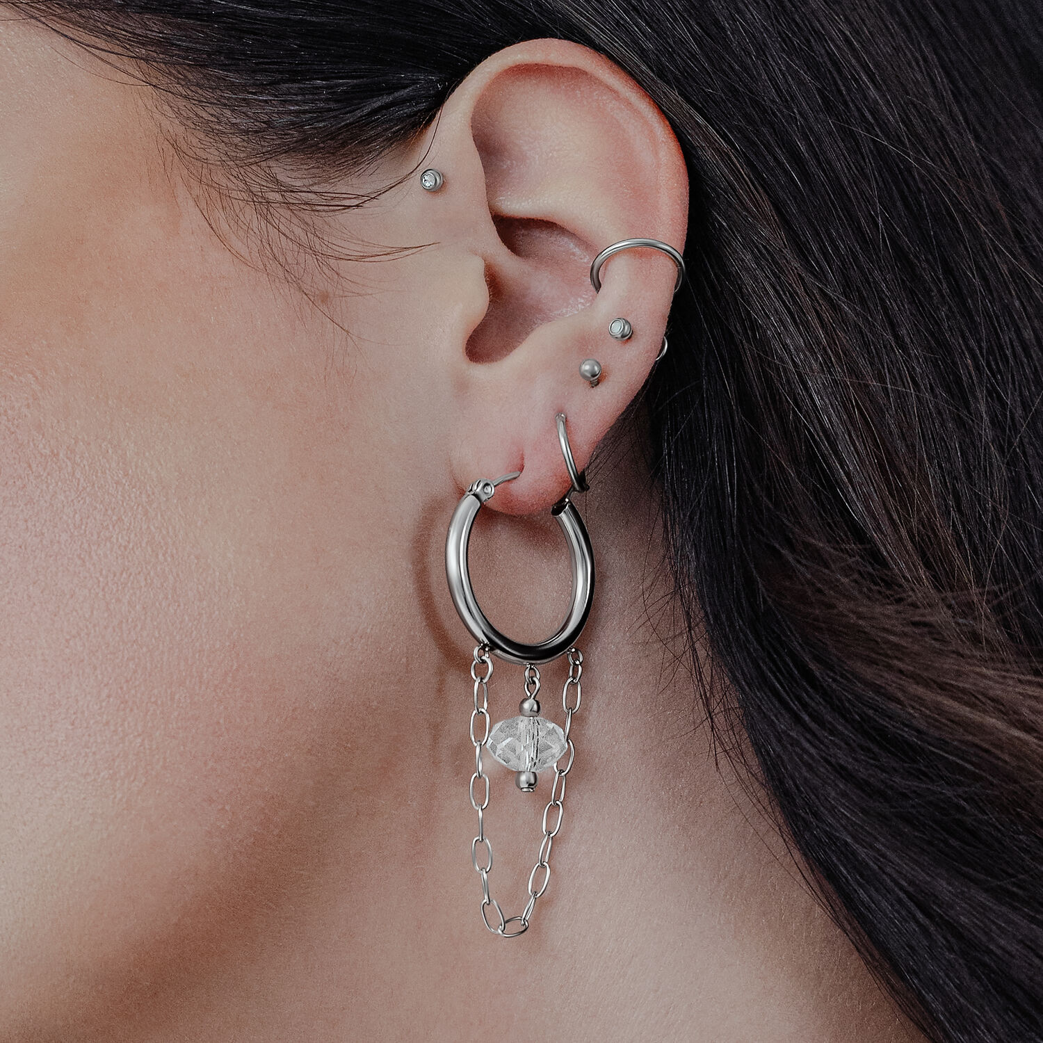 Los aros Edgy White Stone son imprescindibles para quienes aman los pendientes llamativos con elegancia moderna. El diseño combina aros de alta calidad con dos delicados detalles de cadena y una piedra de cristal blanco facetada, lo que los convierte en un elegante centro de atención para cualquier oreja. Los aros están disponibles en plata clásica o en oro noble y combinan a la perfección con estilos urbanos desenfadados, looks minimalistas o conjuntos elegantes.