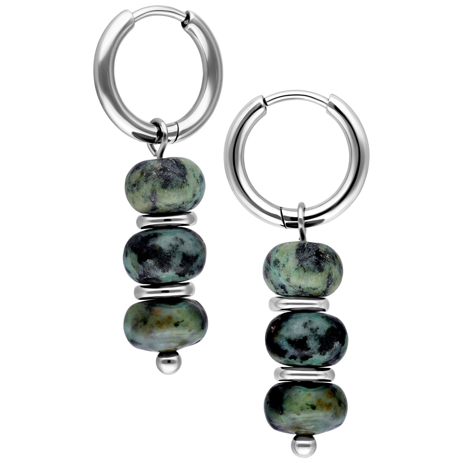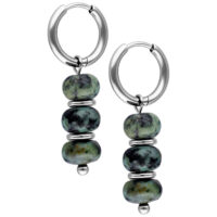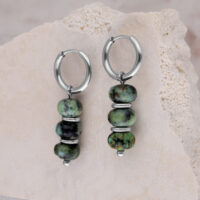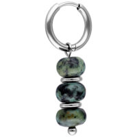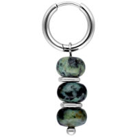 Los Aros Green Agate Bubble destacan por una combinación súper armoniosa de formas metálicas limpias y elementos de piedra con un look natural. Varias cuentas de ágata verde de forma redondeada se colocan en vertical, creando un conjunto tranquilo y orgánico con un movimiento suave.