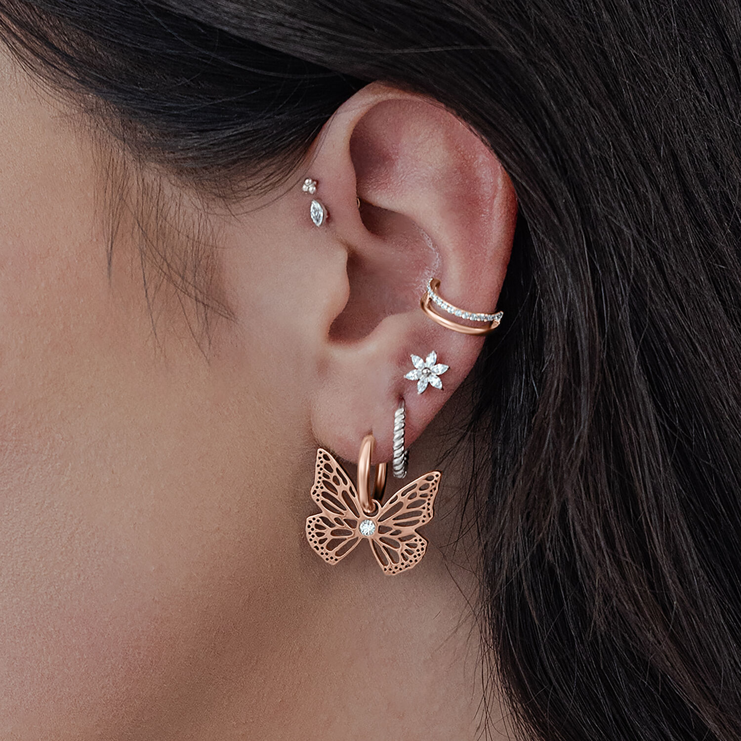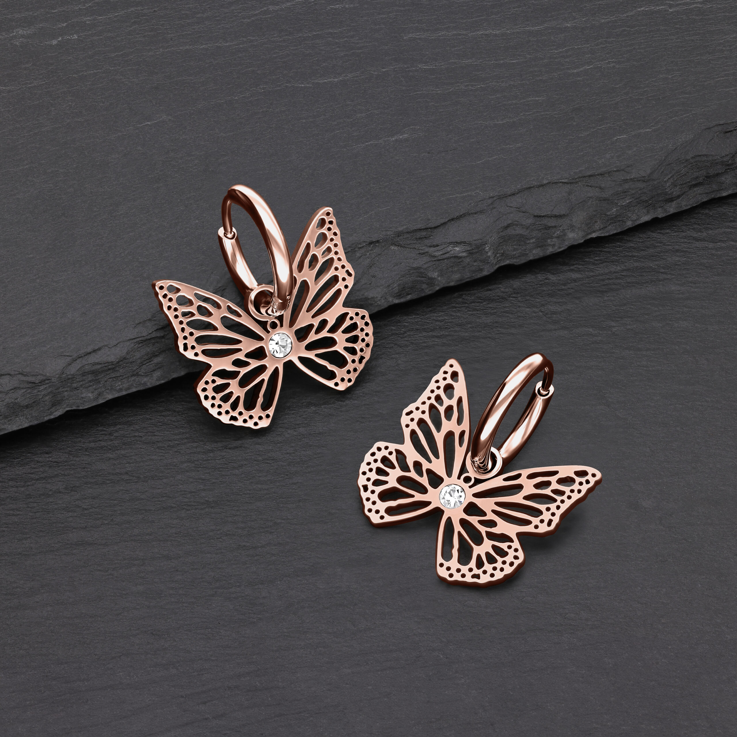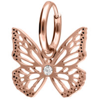 Divertidos y elegantes a la vez: nuestros Little Butterfly Hoops son un verdadero atractivo. Estos pequeños aros encantan con una delicada mariposa que se balancea suavemente con cada movimiento, evocando los movimientos naturales de una mariposa real. El cuerpo de la mariposa está adornado con un pequeño cristal, lo que le da un toque brillante.