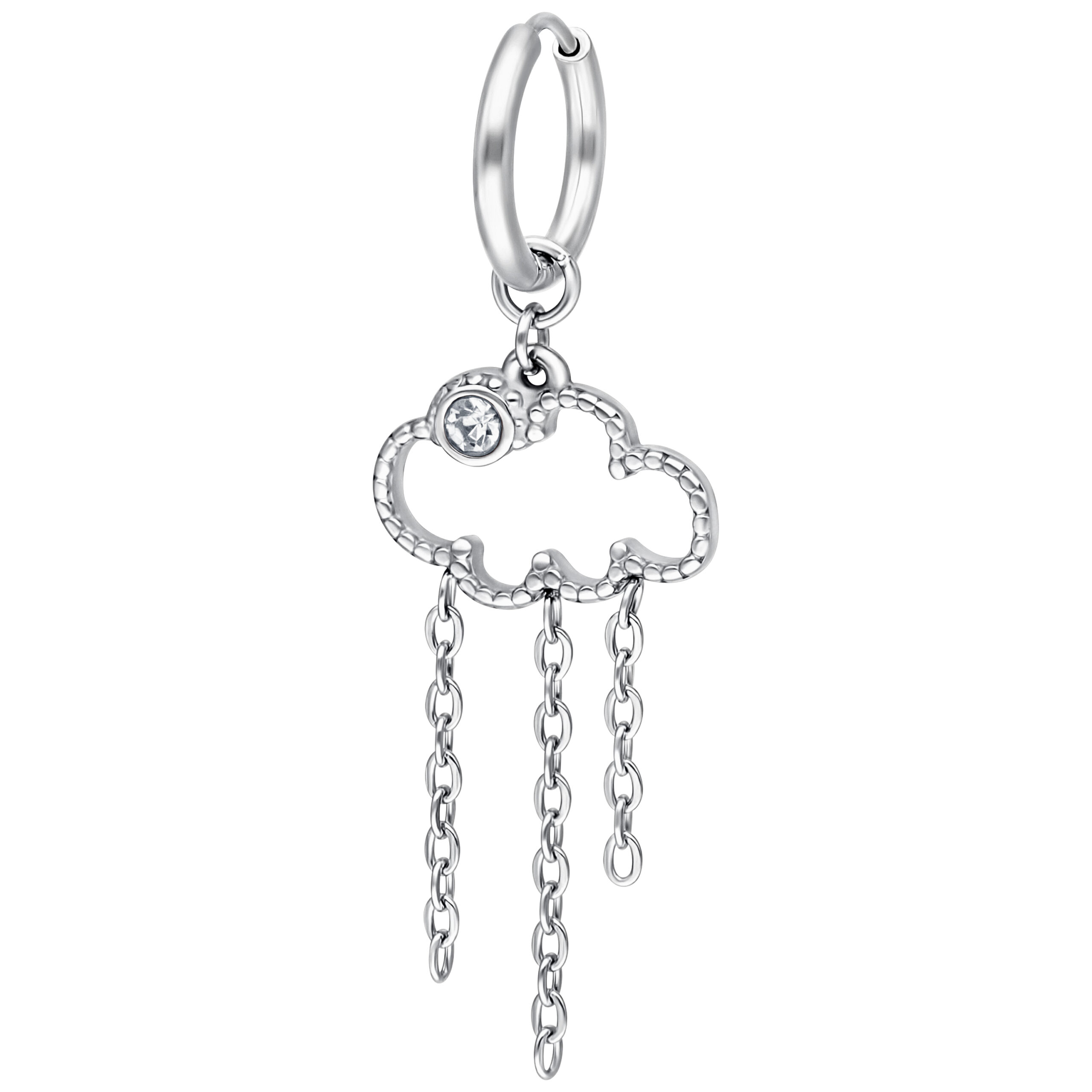Estos adorables aros con diseño de nubes están inspirados en una ligera lluvia de verano. Las finas cadenas combinadas con el pequeño cristal completan perfectamente el look delicado.