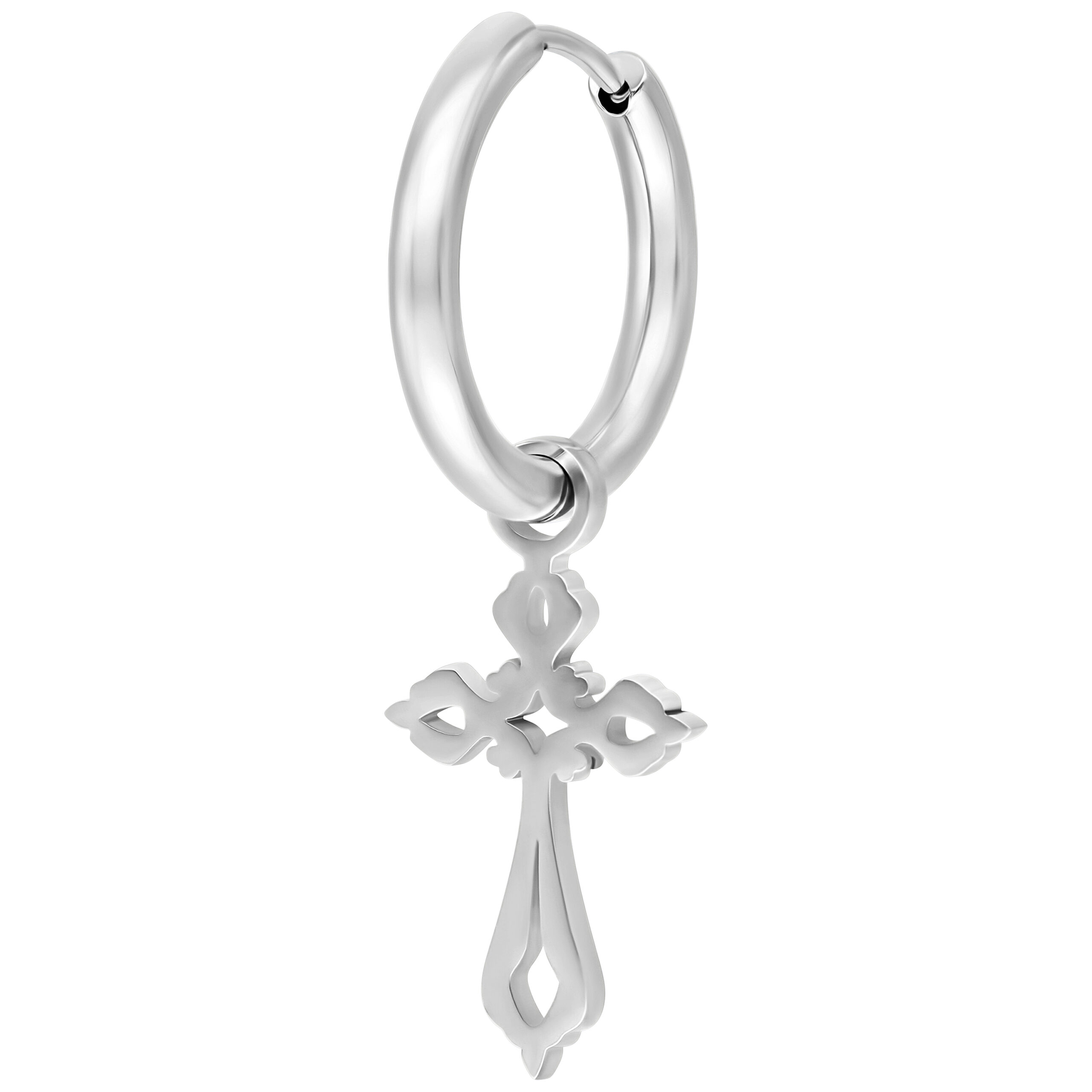 El aro base tiene un diámetro interno de 14.0 mm. El colgante mide 11.0 x 23.0 mm. El grosor del pin es de 1.0 mm y el del aro de 2.5 mm.
