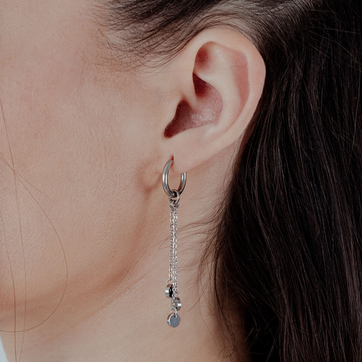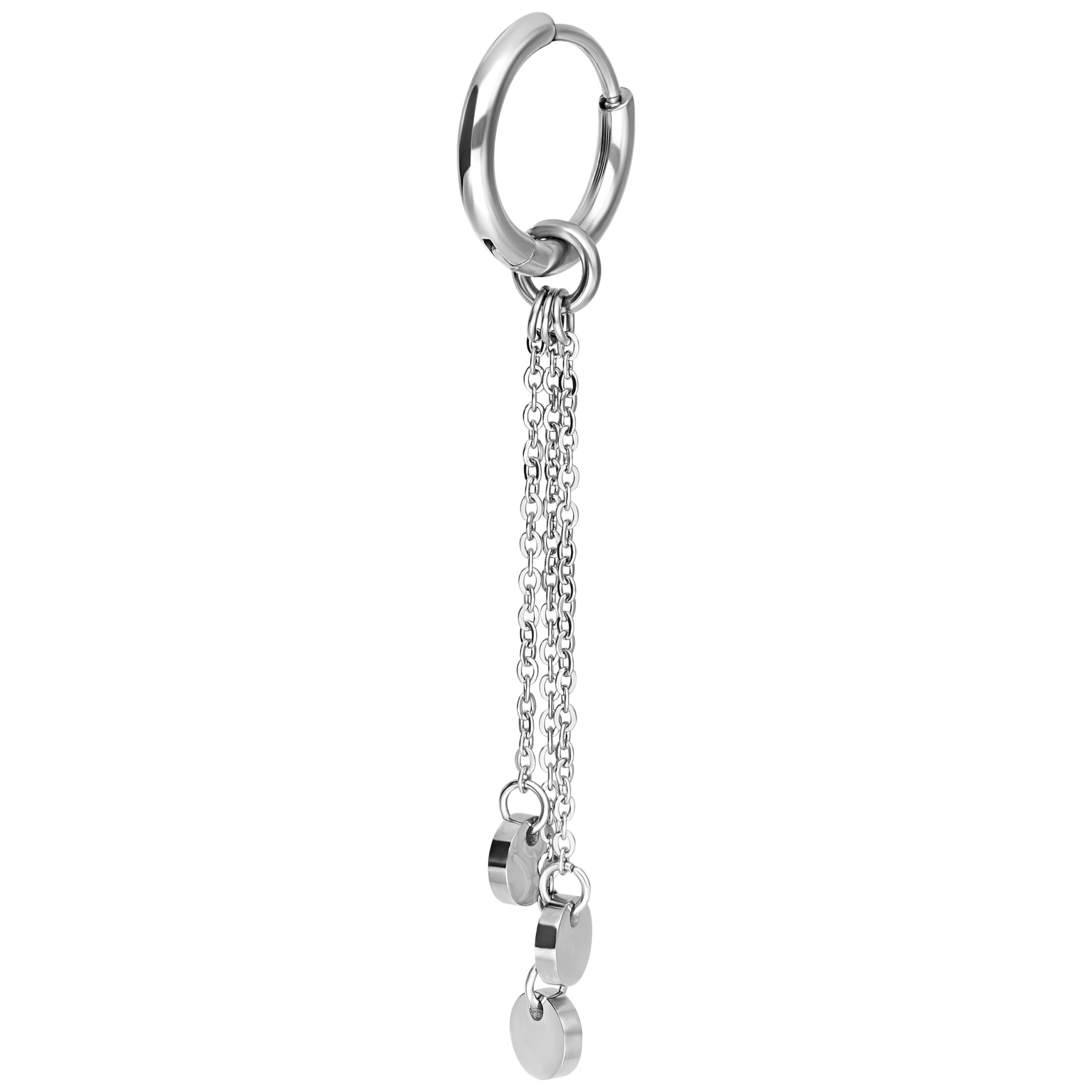 Combinan un pequeño aro al que se sujetan tres finas cadenas, que se mueven suavemente con cada movimiento y crean un look fascinante. Con un diámetro de aro de 10,0 mm, son adecuados tanto para orejas perforadas normales como para dilatadas, ¡un verdadero todoterreno para tu estilo personal!