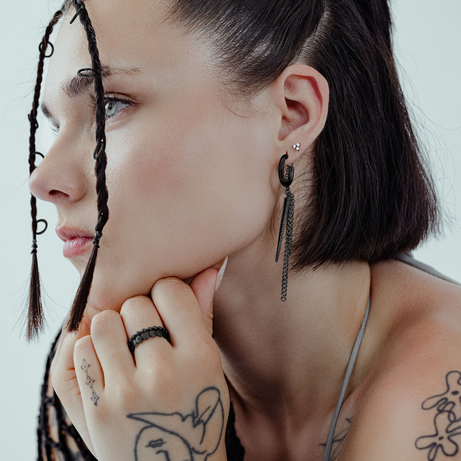 Nuestros Little rockin’ Triangle Earstuds son el toque perfecto para quienes se atreven a destacar con su estilo. Ofrecen una combinación única de diseño industrial y elegancia. Ya sea en festivales, conciertos o en el día a día, estos Earstuds quedan perfectos con chaqueta de cuero, streetwear, blazer o un look totalmente negro, haciendo que cualquier outfit destaque.