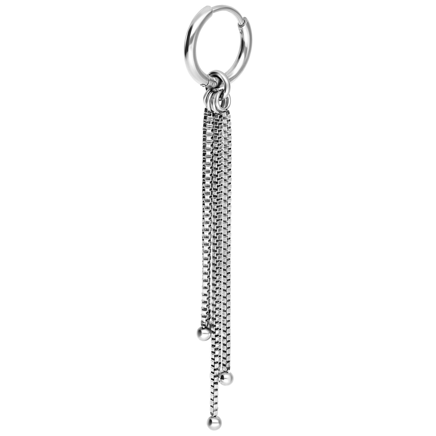Combinan un pequeño aro al que se sujetan tres finas cadenas, que se mueven suavemente con cada movimiento y crean un look fascinante. Con un diámetro de aro de 10,0 mm, son adecuados tanto para orejas perforadas normales como para dilatadas, ¡un verdadero todoterreno para tu estilo personal!