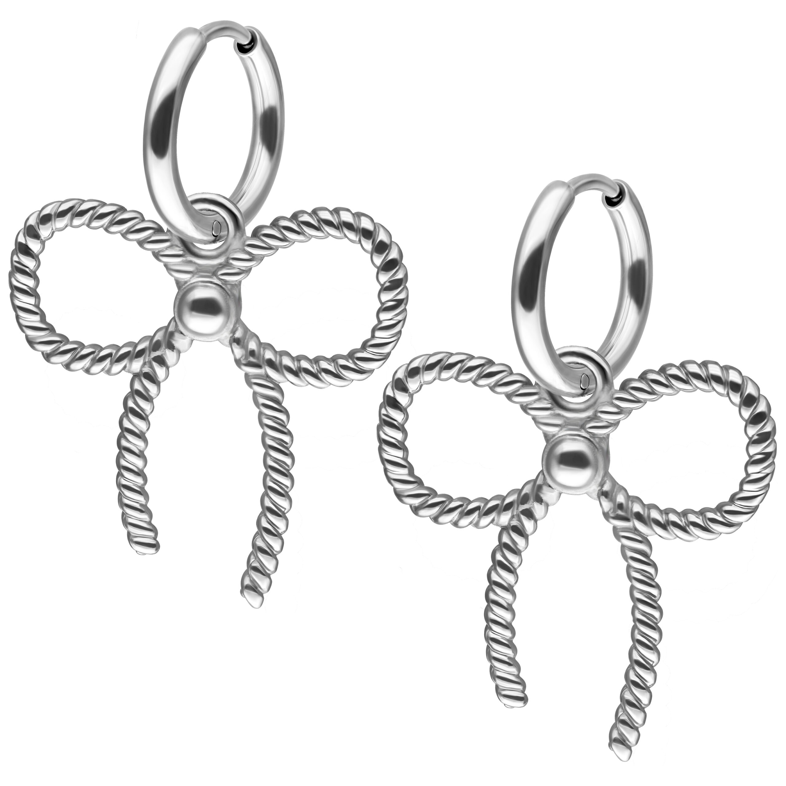 El lazo es el punto focal de los aros, aportando un toque dulce y juguetón, mientras que el diseño sencillo del aro transmite elegancia atemporal. Fabricados en acero de alta calidad, nuestros aros son duraderos, robustos y cómodos de llevar. Gracias al práctico cierre de clic, tu nueva joya favorita se puede usar todo el día sin molestias.