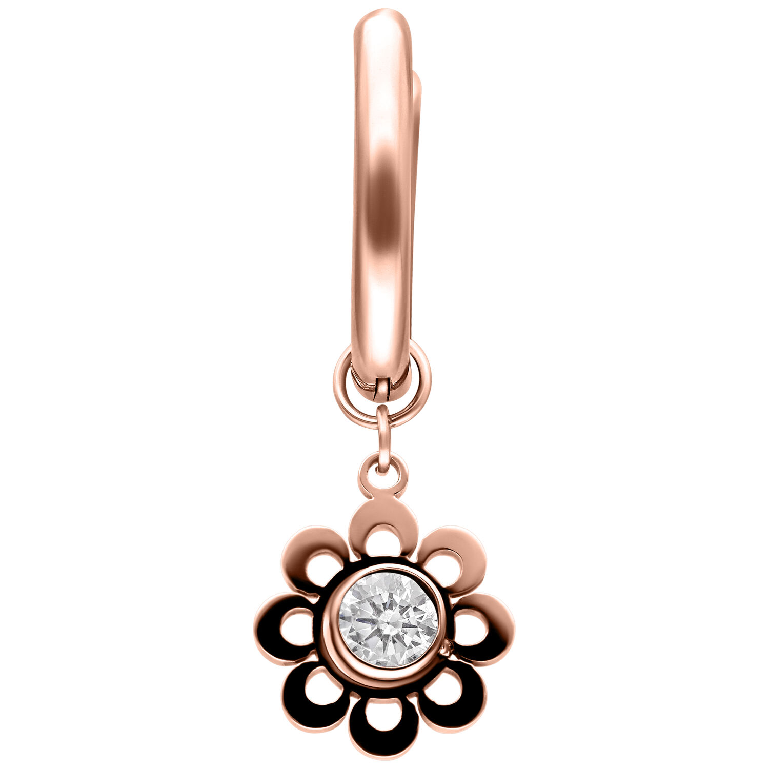 ¡Florece con estilo! Los Mini Crystal Flower Hoops son pequeñas argollas con cierre de bisagra y delicados colgantes de flor, que gracias a sus cristales brillantes hacen que cualquier look resplandezca. Su diseño femenino combina elegancia juguetona con un toque moderno, perfecto para quienes aman los detalles florales y los toques brillantes.