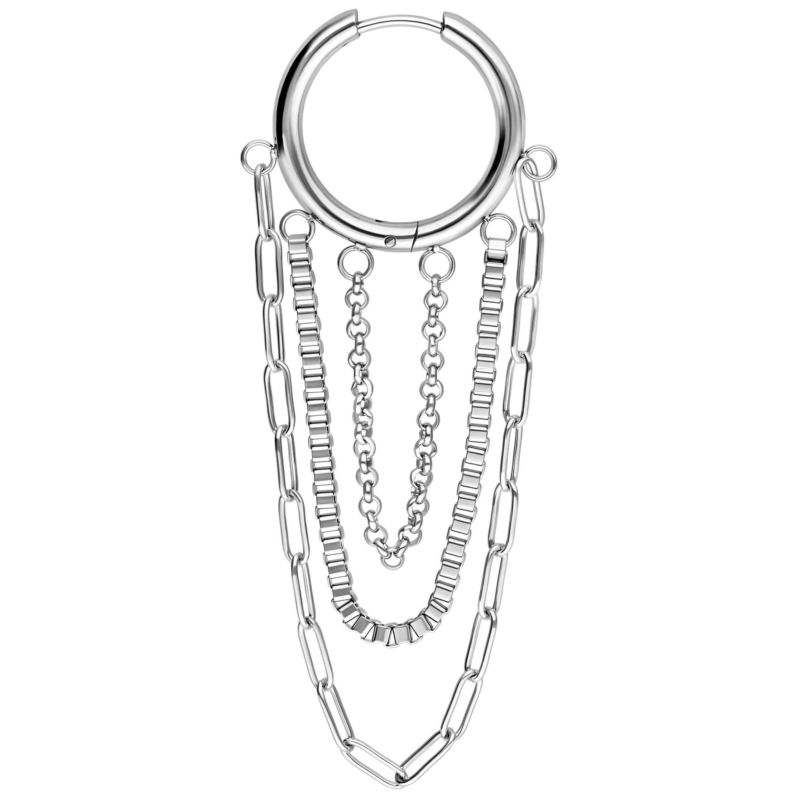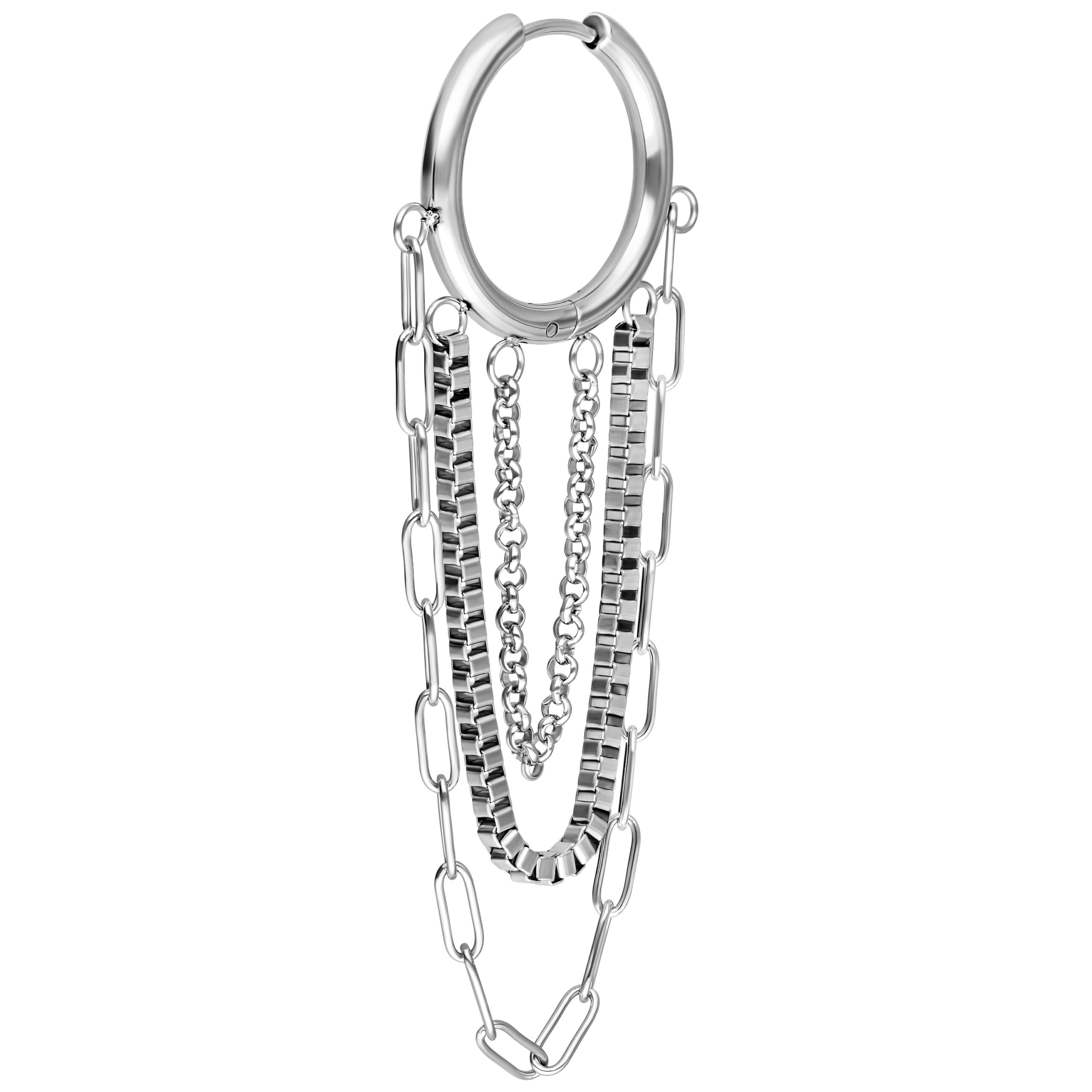Cadenas gruesas y llamativas unidas con elegancia y un toque de audacia, combinadas con diferentes cadenas.