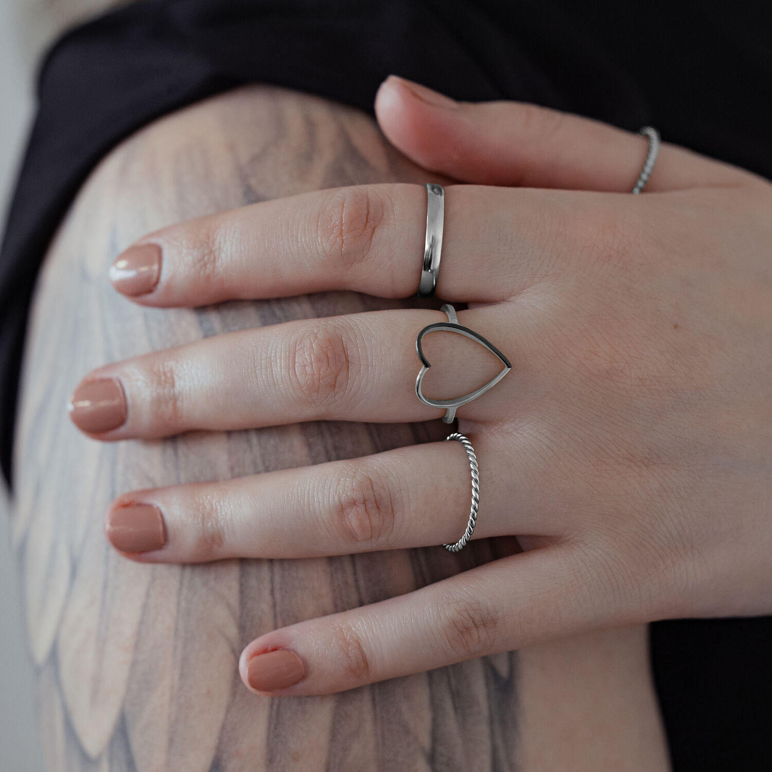 Este bonito anillo está hecho de acero inoxidable 316L de alta calidad. Lo recibirás en tamaños 17.0 mm, 18.0 mm, 19.0 mm y 20.0 mm.