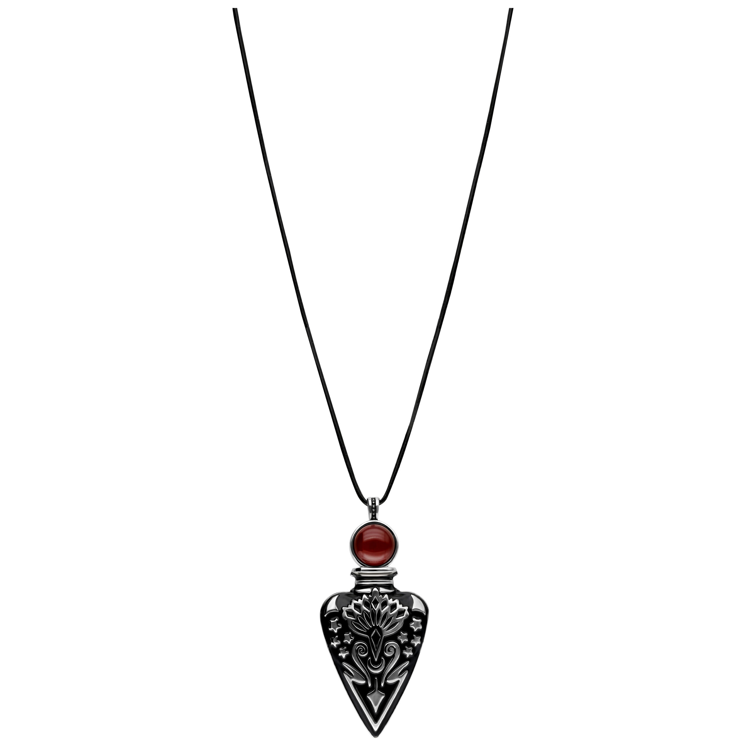 Nuestra excepcional cadena combina un encanto místico con un toque de elegancia. El colgante en forma de botella de lágrima emite una aura misteriosa y hace una declaración audaz. Encima de la botella, un cristal rojo oscuro, que simboliza pasión y energía, aporta un acento fascinante al diseño.