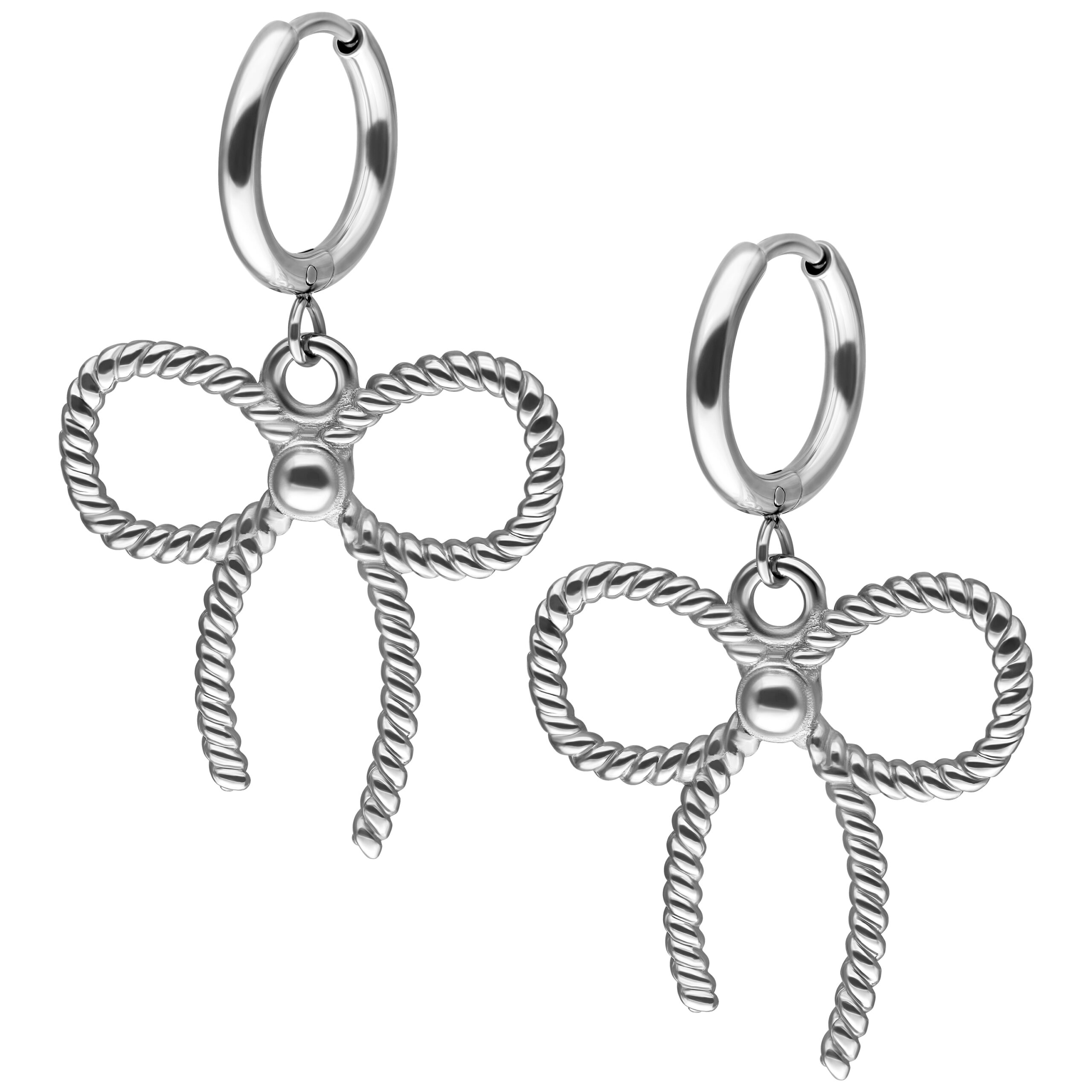 Los aros Twisted Bow a juego aportan un toque encantador: la forma de lazo artísticamente retorcida se ve moderna y divertida a la vez, un verdadero imán de miradas que da a cualquier outfit un toque dulce. Los aros también están hechos de acero quirúrgico 316L duradero, conocido por ser amigable con la piel, resistente al deslustre y de calidad robusta.