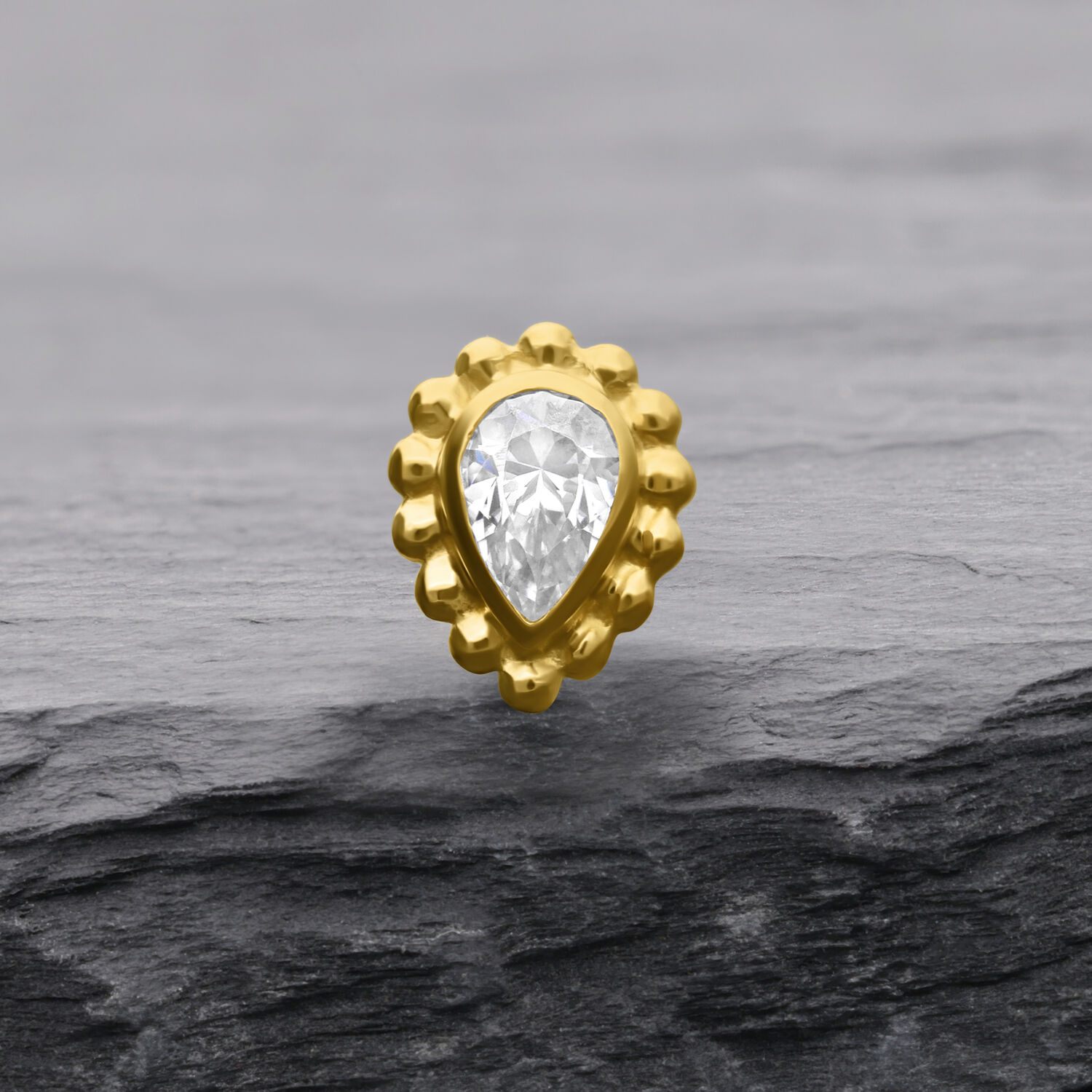 El Crystal Drop Attachment de la colección Wildcat combina brillante oro amarillo de 14k (585) con un deslumbrante cristal en forma de gota. Diseñado especialmente para el Perfect Fit Labret (14K), enamora por su diseño elegante y femenino. Con un tamaño de 3.7 x 4.9 mm y un peso de 0.14gr, este accesorio para piercing no solo es un auténtico llamativo, sino también muy ligero y cómodo de llevar.