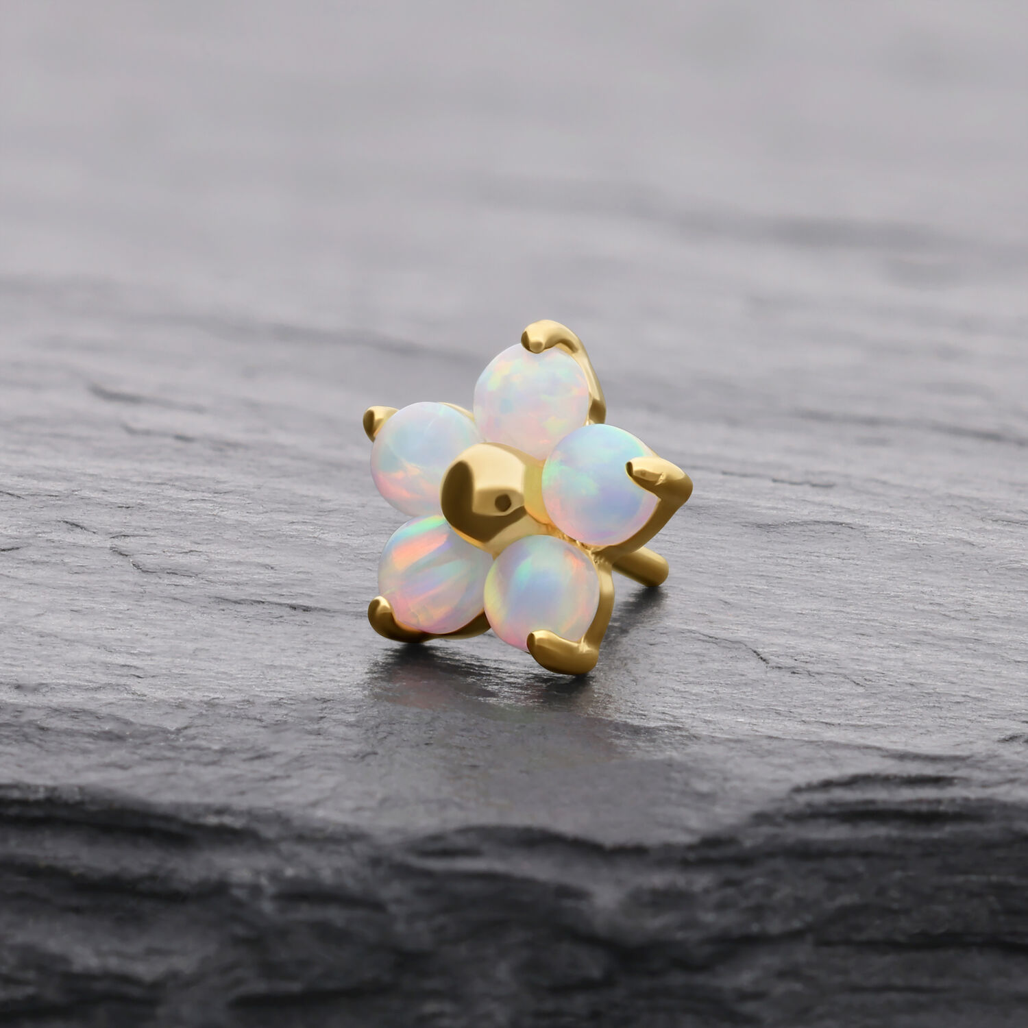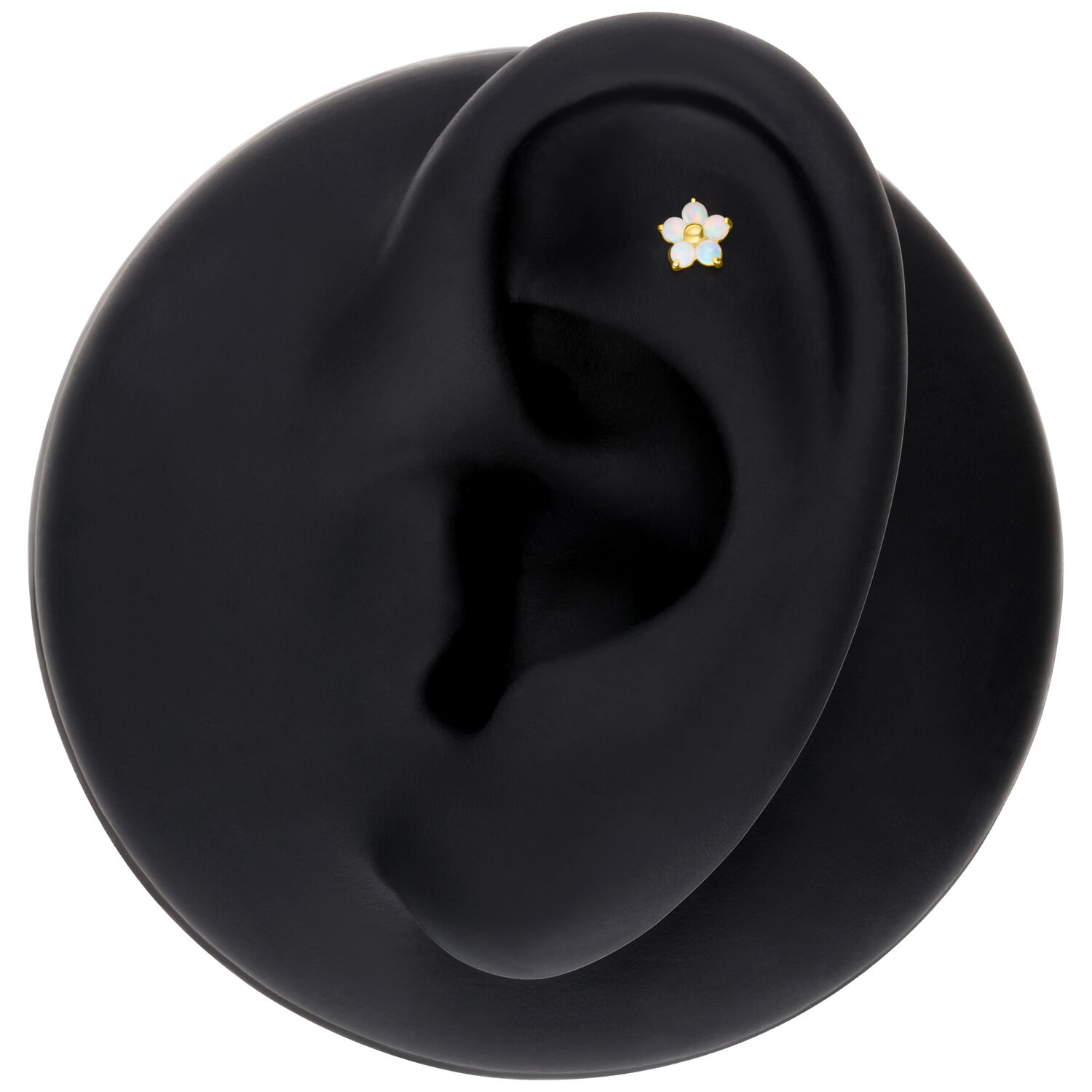 Piercing lujoso en oro amarillo de 14K – Perfect Fit Flower Synthetic Opal Attachment