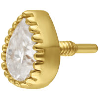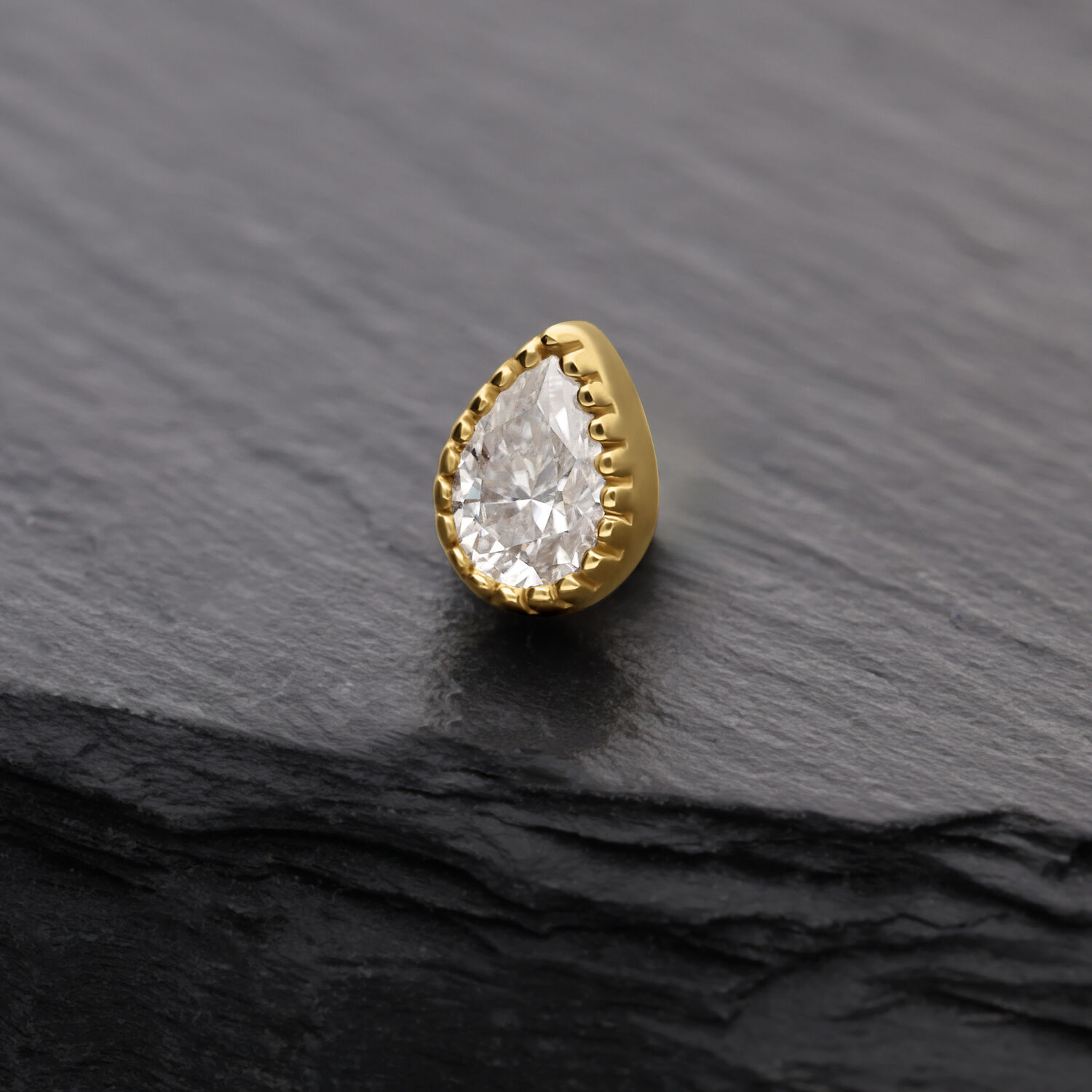 Nuestro elegante 14K Perfect Fit Moissanit Drop Attachment combina materiales de lujo con belleza atemporal. Fabricado en oro amarillo pulido de 14 quilates (585), este accesorio de piercing destaca por su delicado diseño en forma de gota, que realza el look de manera sutil y aporta un toque de glamour.