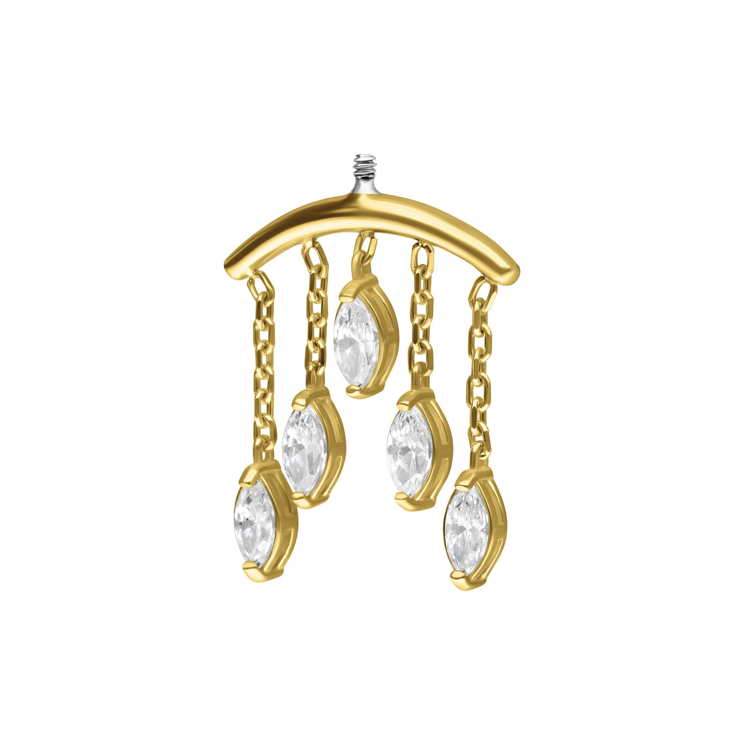 ¿Buscas joyería de piercing exclusiva y lujosa, para regalar o para enamorarte? Entonces estás en el lugar correcto, porque nuestra colección Wildcat te ofrece todo lo que puedas desear en metales preciosos de alta calidad. Nuestro Internally Oval Crystal Drops Hidden Helix Attachment está hecho de elegante oro amarillo de 18k. (750). La rosca Internally es de acero quirúrgico 316L.