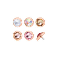 La Micro Jewelled Disc con rosca de 0,8 mm encaja en cualquier Skindiver de 1,2 mm de grosor. ¡Está disponible en tamaños de 3,0 mm y 4,0 mm! El cristal está tallado para refractar la luz y brillar en múltiples facetas de un mismo color. Los accesorios están disponibles en muchos colores de cristal y en cada una de nuestras 4 tonalidades de metal.