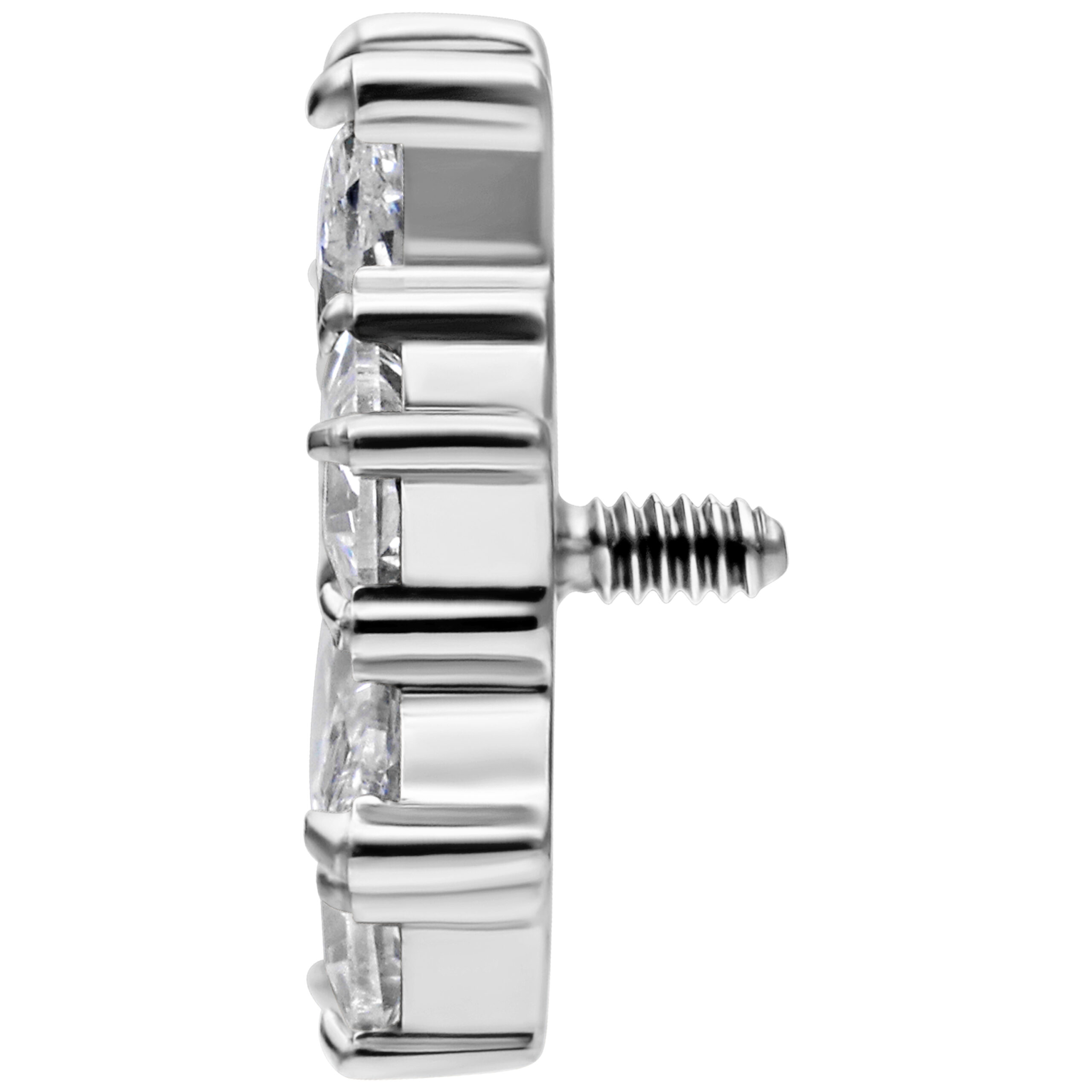 En este accesorio, el titanio de alta calidad se combina con un diseño clásico. Los accesorios de titanio son ideales para joyería Internally con una rosca interna de 0.8 mm. Además, son súper combinables con nuestras barras internamente para piercings triples. ¡Crea tu labret perfecto, justo como te gusta!