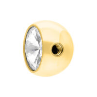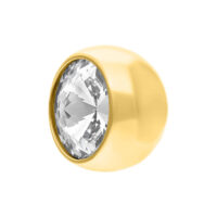 La Jewelled Ball Side Threaded de Titan Zirconline® es adecuada para cualquier rosca externa de 1.6 mm. Con un tamaño de 8.0 mm y su cristal engastado lateralmente, que refracta la luz y brilla en diversas facetas, es especialmente ideal como bola inferior para tu Bananabell de ombligo.