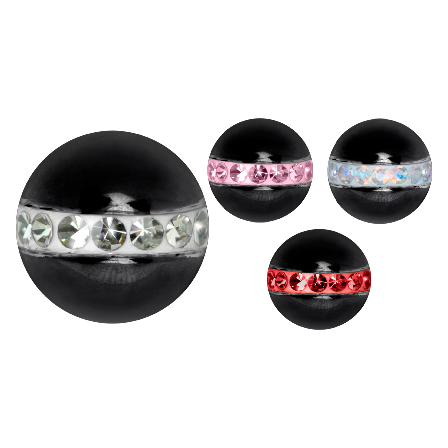 La Multi Jewelled Side Bola de Steel Blackline® está decorada con una fila de innumerables cristales elegantes y de alta calidad. ¡Este artículo es absolutamente único en nuestro catálogo y de una calidad excelente!