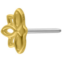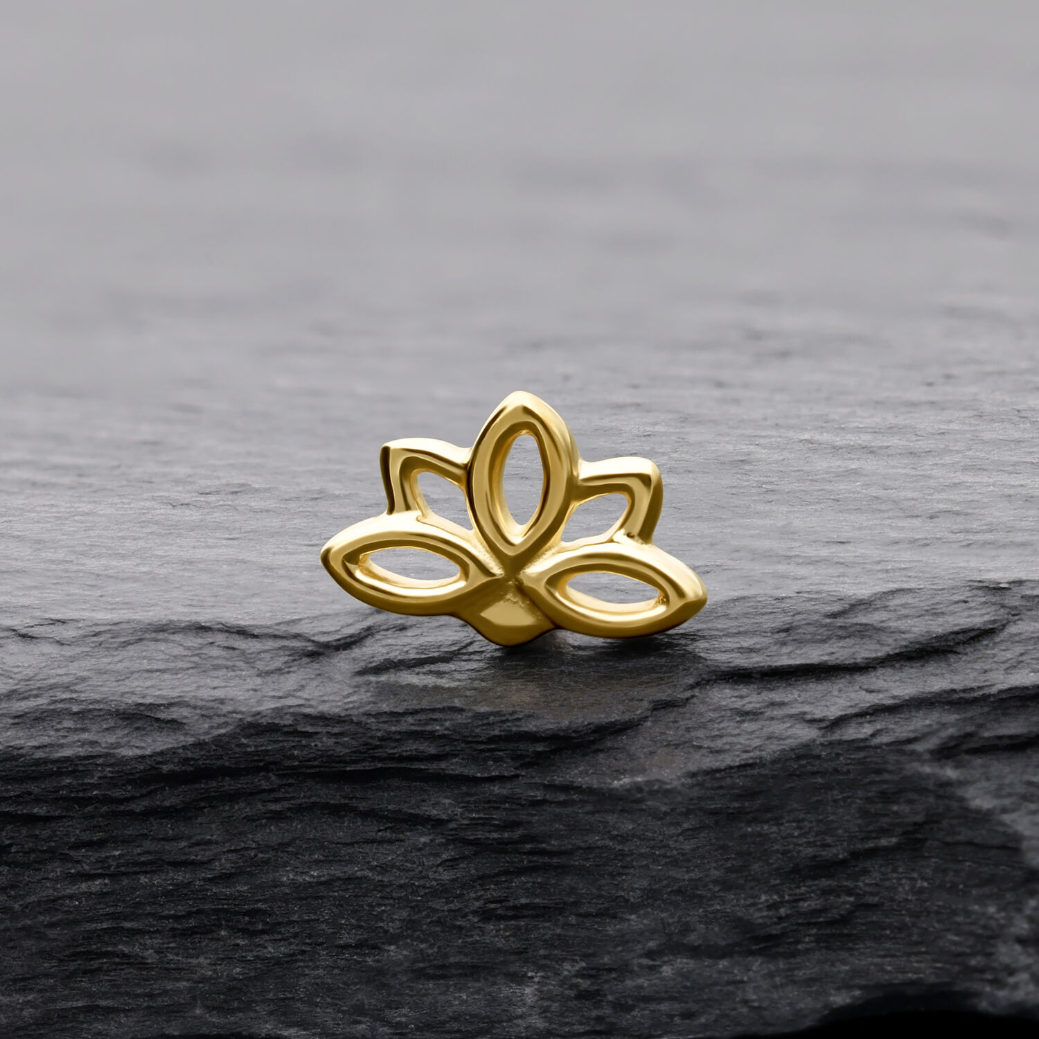 El Accesorio Lotus Push-Fit 14K Gold combina líneas limpias, estética moderna y la fuerza simbólica del loto. Fabricado en oro macizo 14K, el delicado adorno destaca por su forma armoniosa y minimalista, aportando a cualquier piercing un toque elegante y de alta calidad.