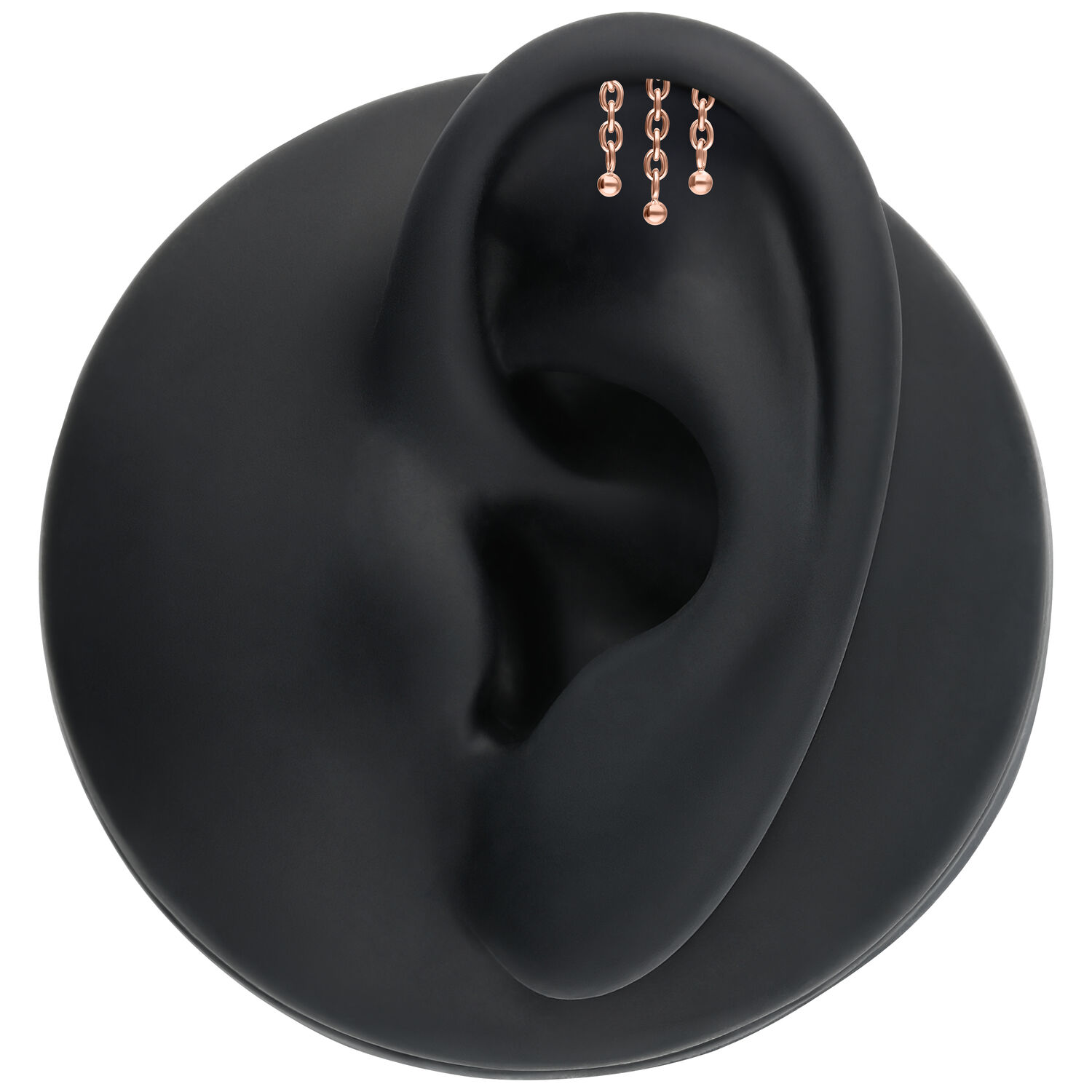 En este cabezal se combina titanio frío y de alta calidad con un diseño innovador. Este cabezal es perfecto para tu Hidden Helix. La barra curva se oculta perfectamente en el pliegue de tu oreja, dejando visible solo la delicada cadena, lo que aporta un toque elegante y distintivo a tu look.
