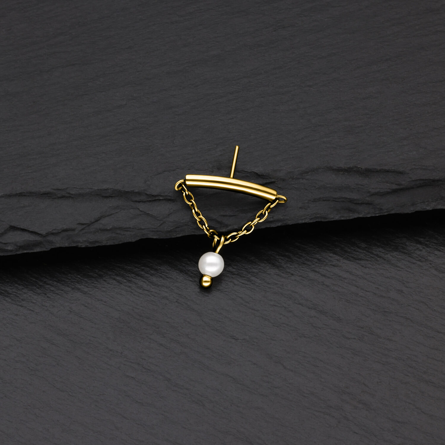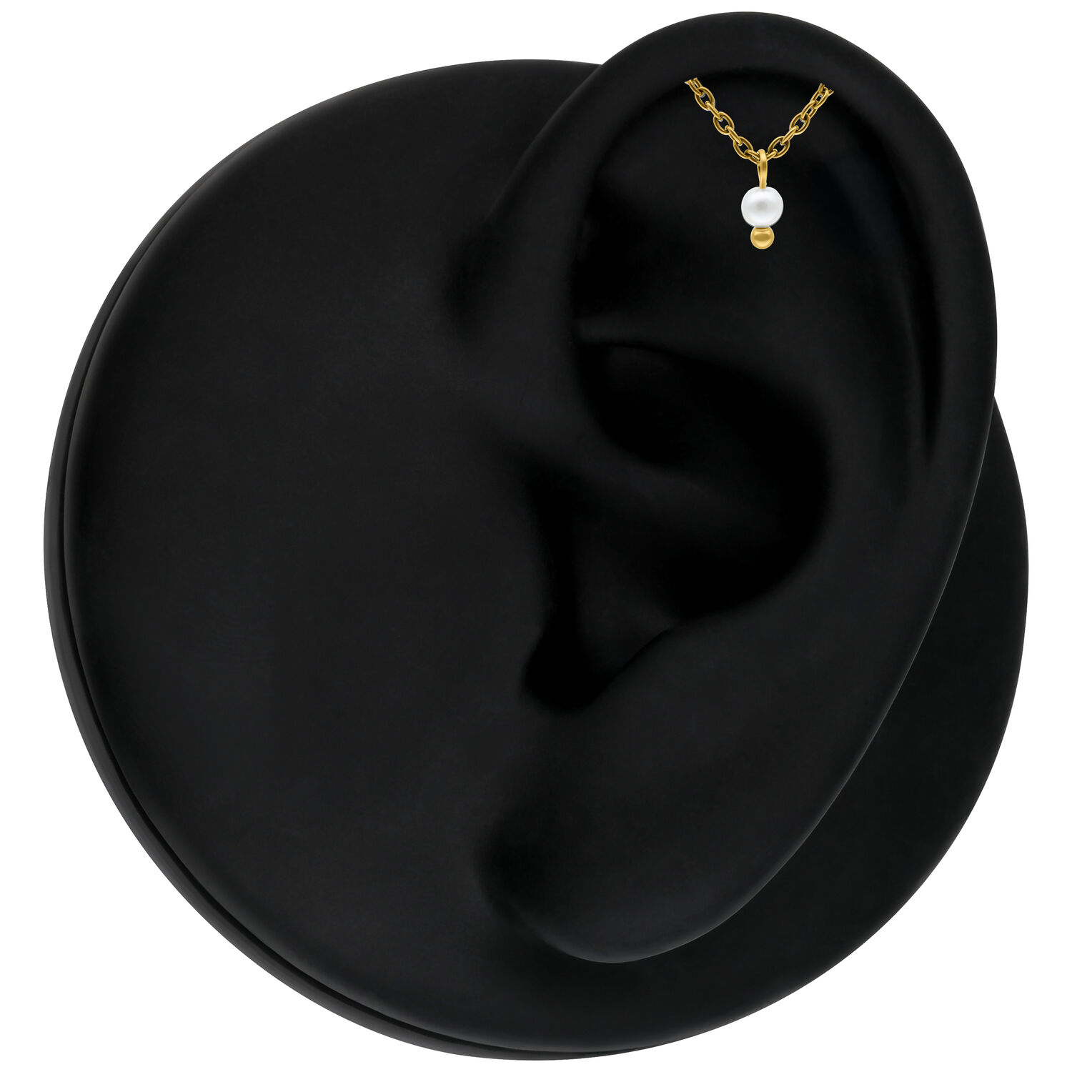 En este cabezal se combina titanio frío y de alta calidad con un diseño innovador. Este cabezal es perfecto para tu Hidden Helix. La barra curva se oculta perfectamente en el pliegue de tu oreja, dejando visible solo la delicada cadena, lo que aporta un toque elegante y distintivo a tu look.