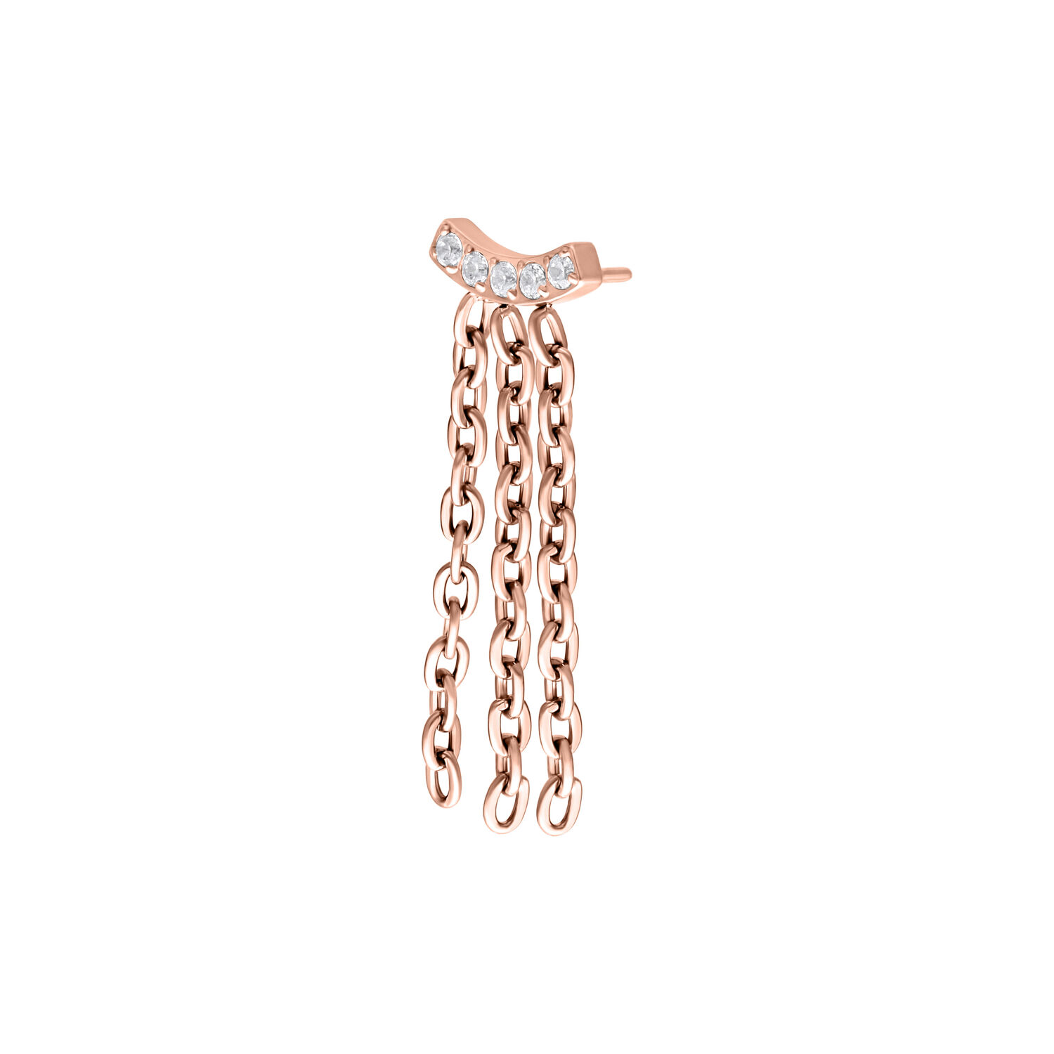 ¿Buscas un toque de brillo y actitud? Nuestro Push Fit Crystal Bar Chain Attachment, con arco de cristal brillante y cadenas colgantes, es una pieza que llama la atención al instante. Las finas cadenas caen elegantemente sobre tu oreja, aportando un toque atrevido y a la vez divertido. Una expresión perfecta de individualidad y estilo.