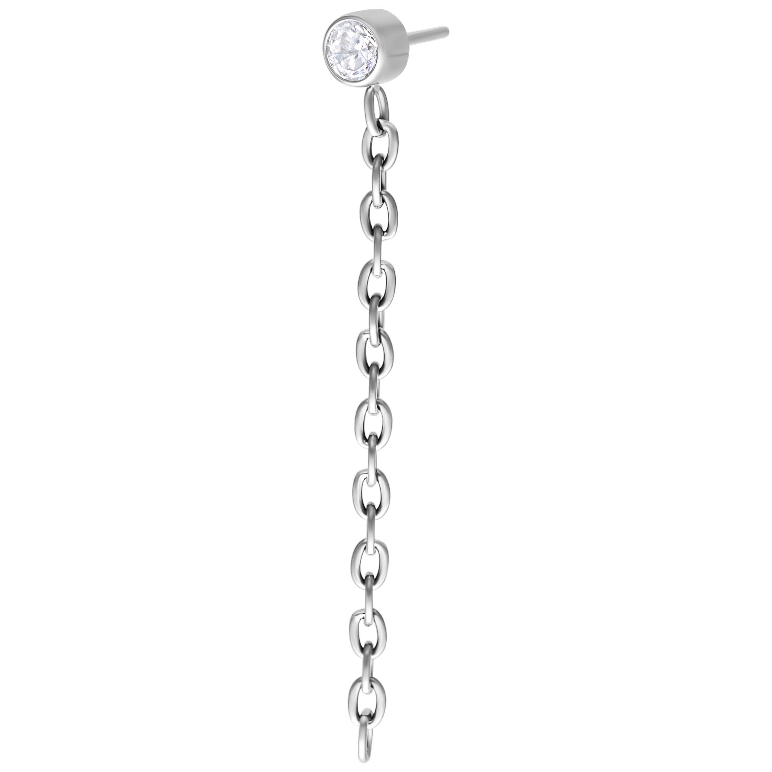 ¿Buscas un toque de brillo y actitud? Nuestro accesorio Push Fit con un cristal brillante y cadenas que caen es una pieza de declaración que llama la atención al instante. Las delicadas cadenas cuelgan elegantemente de tu oreja, añadiendo un toque atrevido y juguetón a este piercing. Es una expresión perfecta de individualidad y estilo.