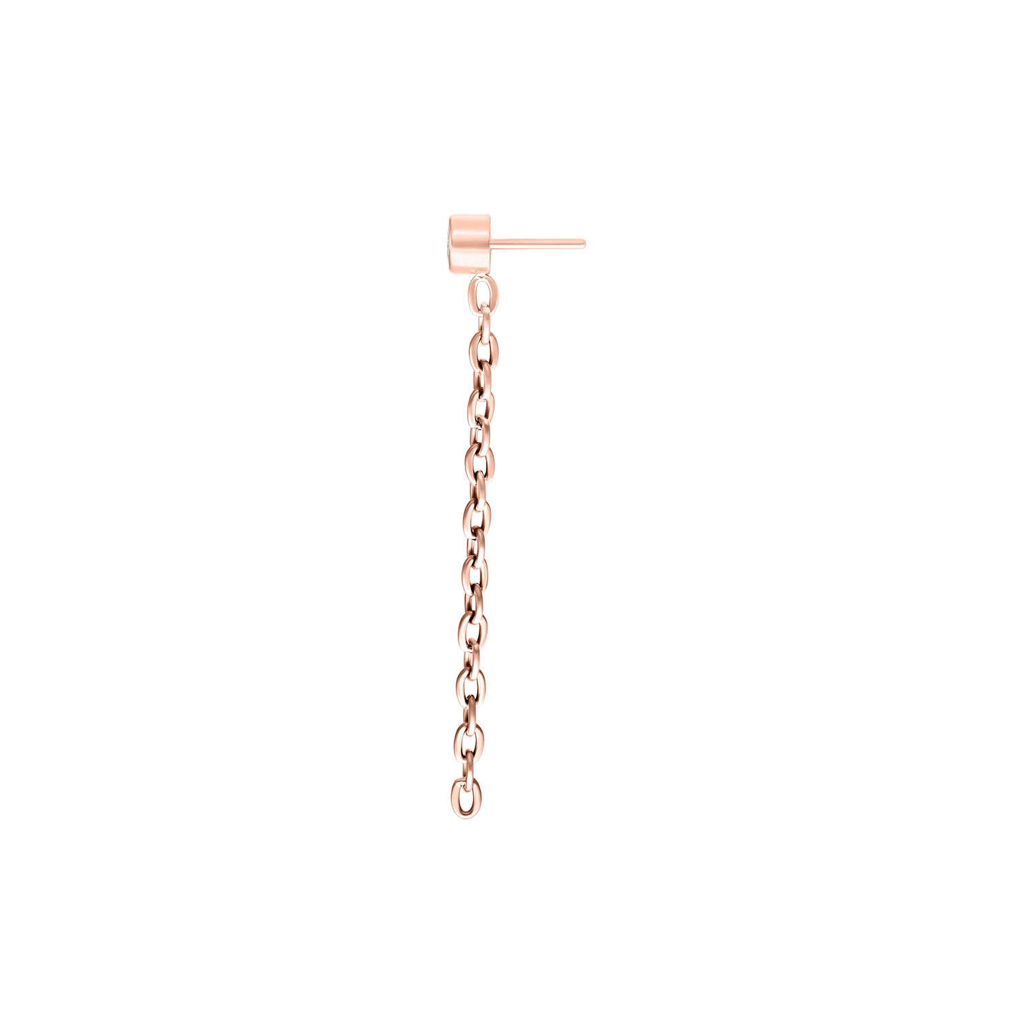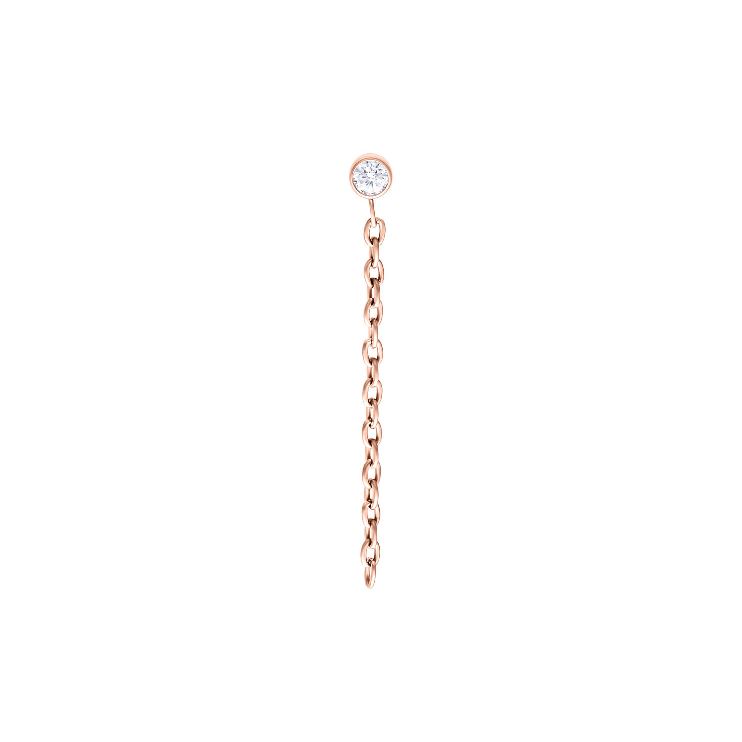 ¿Buscas un toque de brillo y actitud? Nuestro accesorio Push Fit con cristal brillante y cadenas que caen es una pieza de declaración que llama la atención al instante. Las finas cadenas cuelgan elegantemente de tu oreja y le dan a este piercing un toque atrevido y juguetón. Una expresión perfecta de individualidad y estilo.