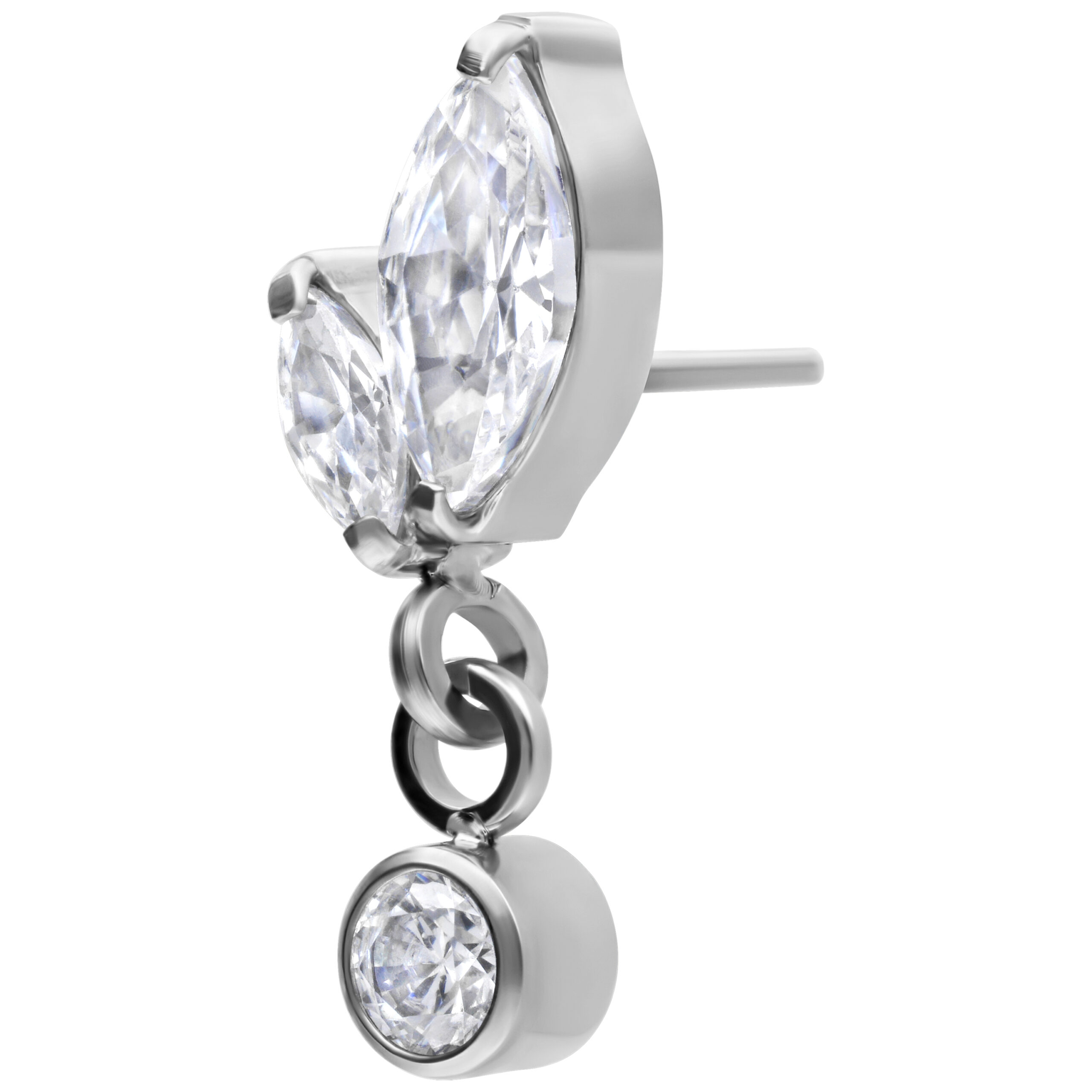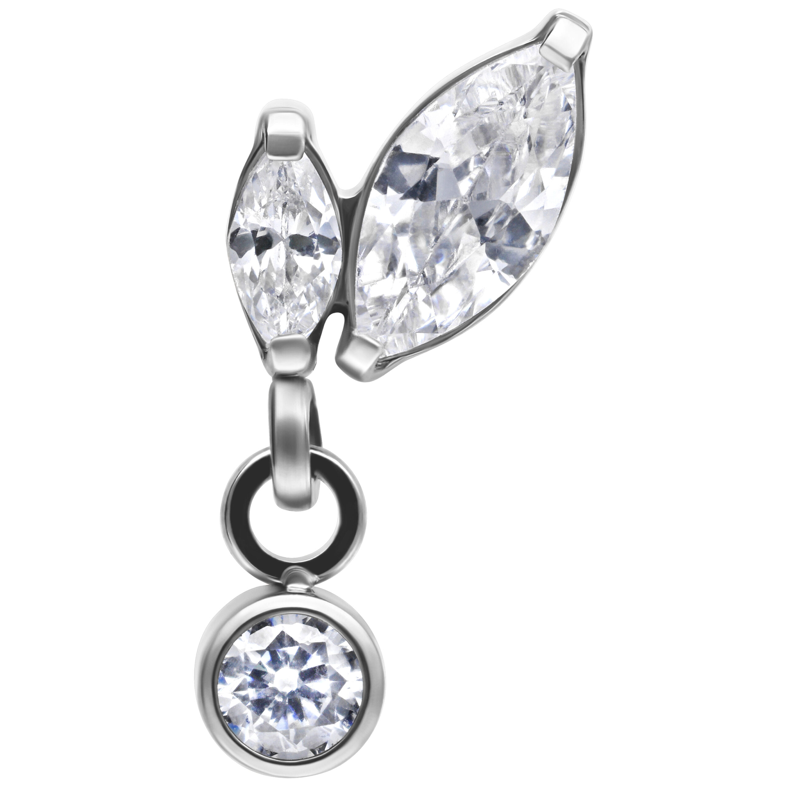 Nuestro Push Fit Double Marquise with Drop Attachment, con sus elegantes cristales ovalados y el colgante, brilla de manera preciosa con la luz y aporta un toque de glamour a tu look, sea cual sea la ocasión. El colgante se mueve suavemente junto a los dos cristales en forma de marquise, haciendo que brilles aún más con cada movimiento. Ya sea para el día a día o para ocasiones especiales, con este precioso accesorio siempre acertarás.