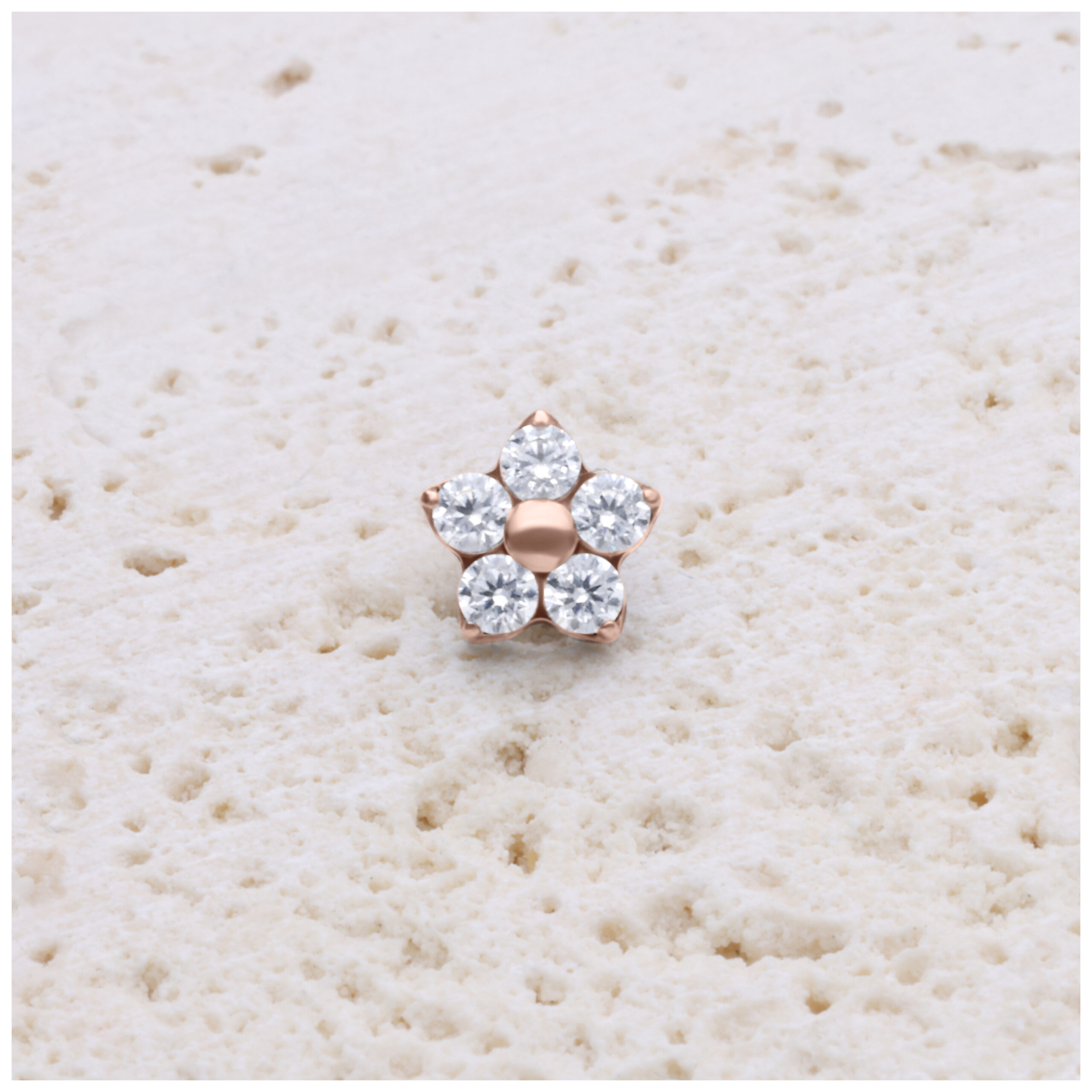 Este exquisito attachment de titanio destaca por su elegante forma floral y un detalle excepcional. Los pétalos están formados por muchos pequeños cristales que captan la luz desde todos los ángulos, creando un brillo fascinante.