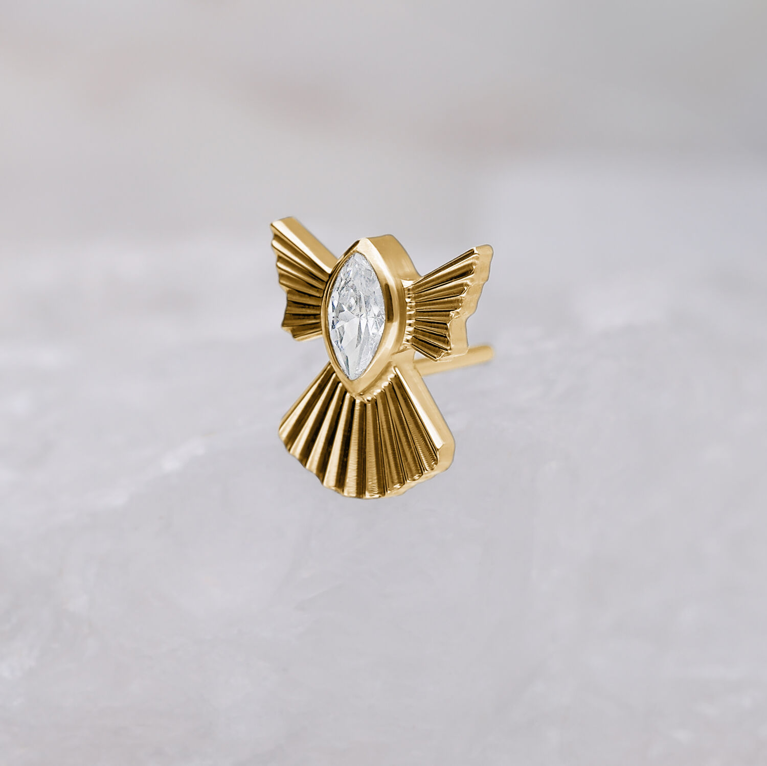 El Winter Snow Angel Attachment aporta a tu piercing una elegante y delicada inspiración invernal. El fino diseño de ángel captura la luz de manera hermosa, creando un suave y helado destello. Fabricado en titanio de alta calidad grado 23 (G23), el accesorio es muy compatible con la piel y perfecto para el uso diario.