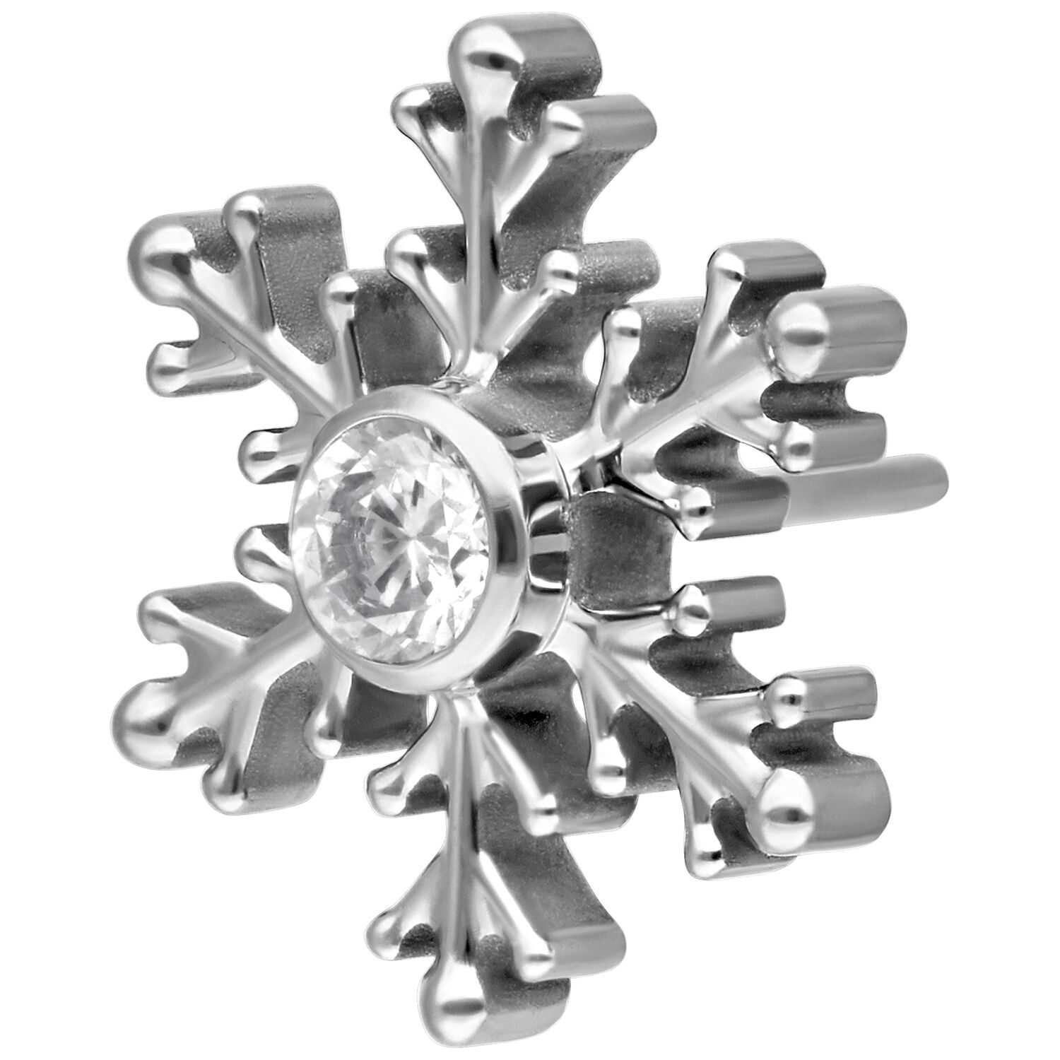 The Push Fit Winter Snowflake Attachment brings a touch of winter magic to your ear styling. Crafted from Grade 23 titanium, the detailed snowflake design features clean, delicate arms and a sparkling central crystal that beautifully catches the light.