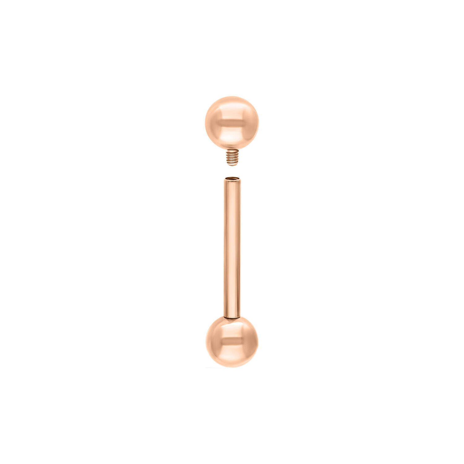 Los Barbells de la línea Titan Rosegoldline están fabricados con gran atención al detalle y cuentan con esferas desenroscables en ambos extremos (cada Barbell se compone de una barra y dos esferas). Además, todas las roscas en nuestras colecciones de joyería están estandarizadas, lo que te permite combinar anillos, esferas, barras y accesorios según tu preferencia.
