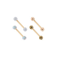 Las barras tienen un grosor de 1,2 mm y están disponibles en longitudes de 8,0 y 10,0 mm. Las bolas están decoradas con cristales sellados y tienen un diámetro de 3,0 mm. La versión en Aurora Boreale y blanca también está disponible con bolas de 4,0 mm.