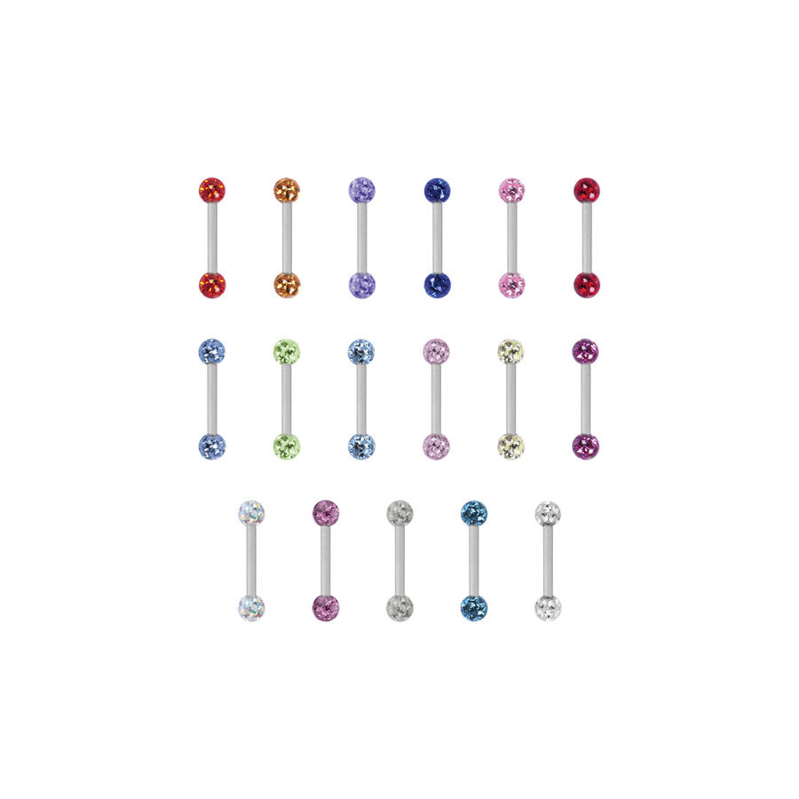 Las Sealed Jewelled Barbells de Titan Highline® tienen un grosor de barra de 1.2 mm. Las bolas del Barbell vienen con cristales de calidad incrustados y sellados. La barra es externally threaded, y las bolas se pueden enroscar en las roscas externas de nuestras Barbells externally threaded.