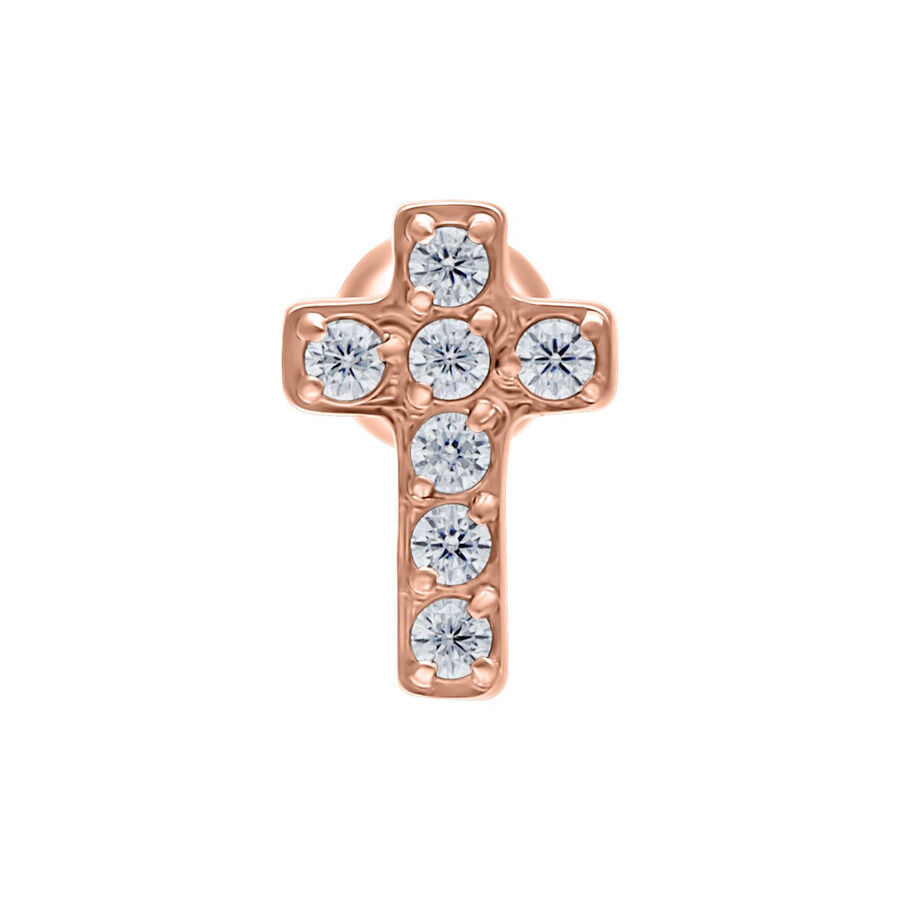 Este precioso Earbarbell destaca especialmente por la pequeña cruz decorada con piedras de circonia. Las cruces tienen un enorme significado cultural y religioso a lo largo de la historia. Mientras que en el cristianismo representan la conexión entre el ser humano y Dios, en la Edad Media se usaban como elemento decorativo en escudos y otros diseños.