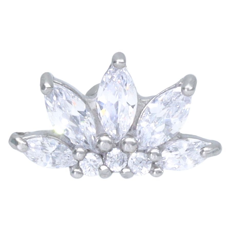 El Lotus Flower Barbell es un piercing que puedes colocar en muchos lugares. Sin duda, es un atractivo visual, especialmente por sus brillantes piedras, y su diseño único destaca de manera efectiva. El piercing tiene un grosor de 1.2 mm y una longitud total de 6.0 mm.