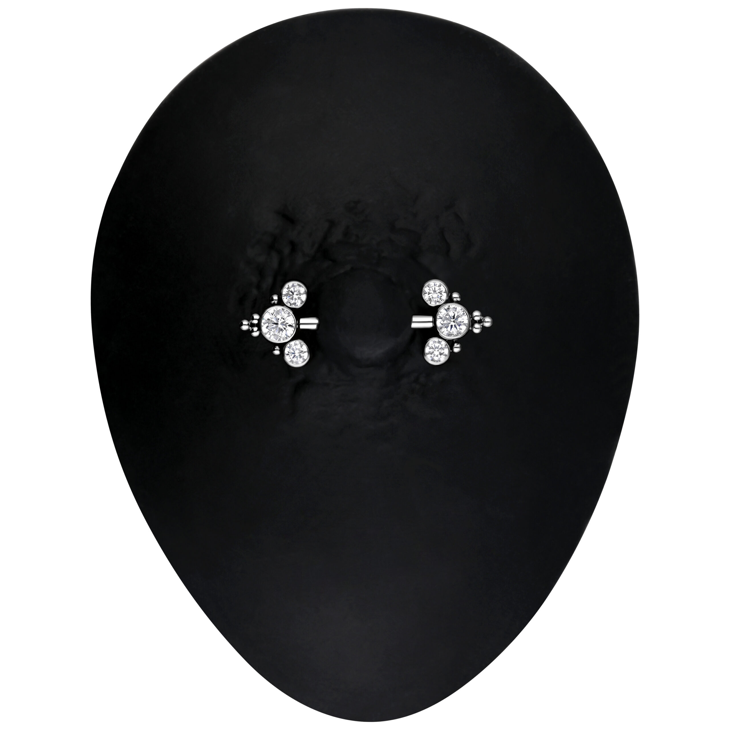 Un adorno con cristal se puede poner y quitar fácilmente, lo que facilita mucho su colocación. El barbell se inserta con facilidad a través del pezón y se asegura en el otro extremo.