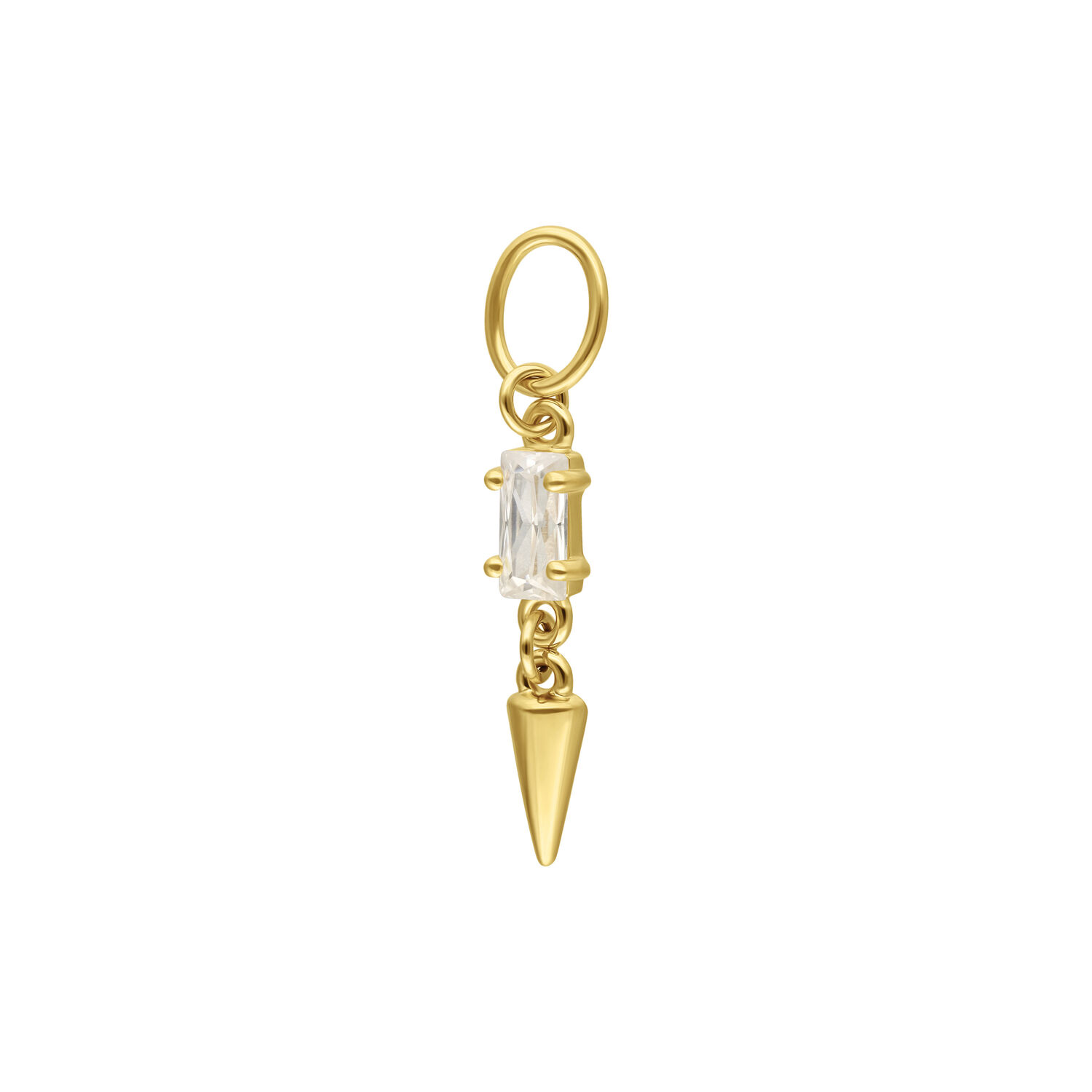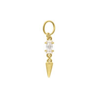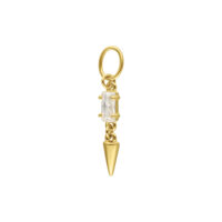 Con un ojo de 3,8 x 4,5 mm, el colgante se puede colocar fácilmente en anillos, aros o clickers, perfecto para personalizar tu look. La moissanita aporta un brillo intenso, mientras que el spike dorado simboliza fuerza, estilo y confianza.