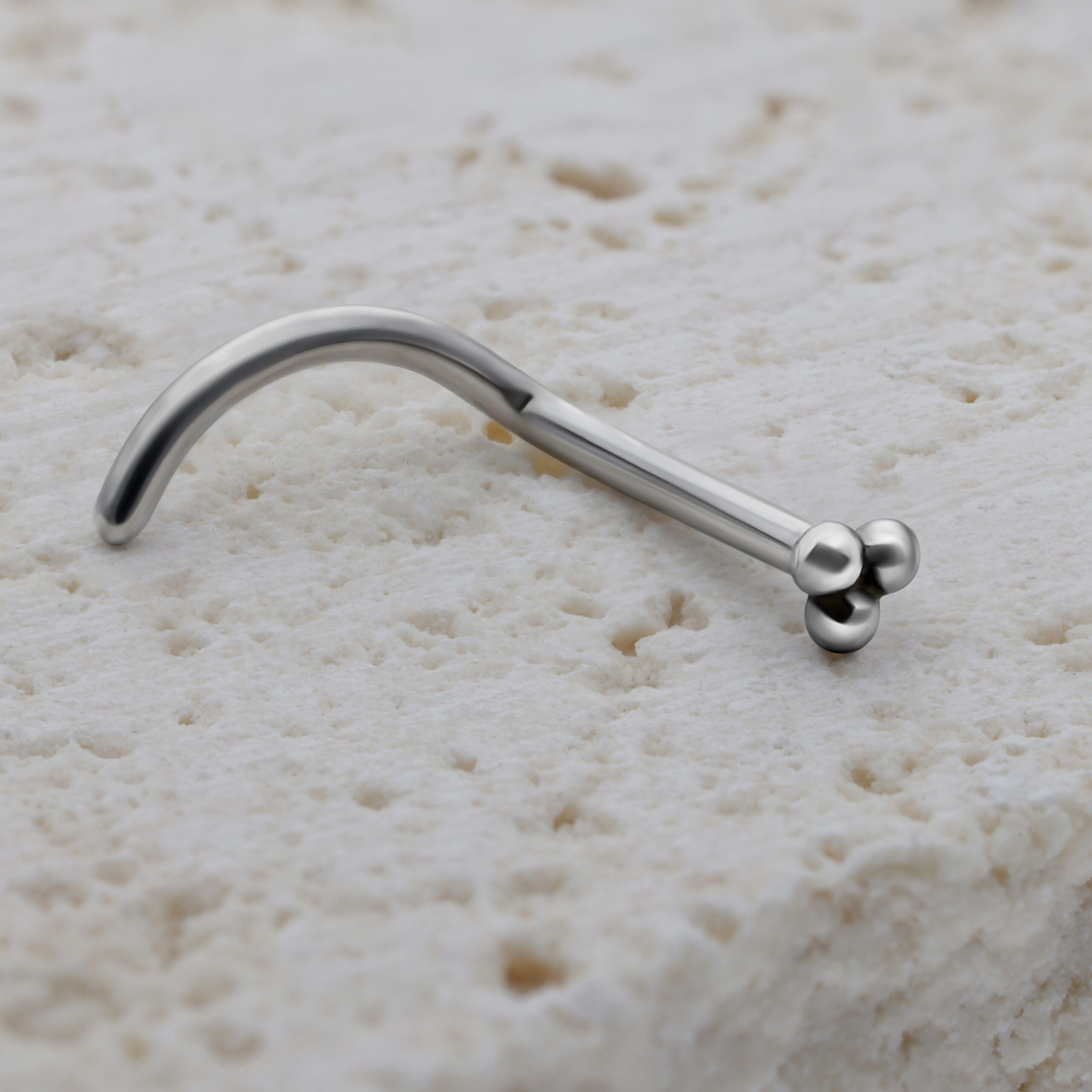 El Tribus Nasenstecker está fabricado en acero inoxidable. El material es totalmente amigable con la piel. La barra curvada tiene un grosor de 0.8 mm y una longitud de 7.5 mm.