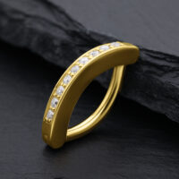 Nuestro lujoso piercing de ombligo en oro de 14K – el 14K Moissanit Crystal Jewelled Belly Arch Clicker combina diseño elegante con un brillo deslumbrante.
