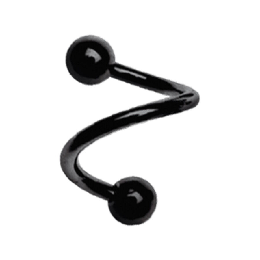 Steel Blackline® Body Spiral se enrolla hacia la izquierda. ¡Un llamativo para labio, oreja o ceja! La rosca es externa, y las bolas se enroscan sobre ella. Las bolas en los extremos no solo aseguran una buena sujeción, sino que también aportan un toque especial al diseño.