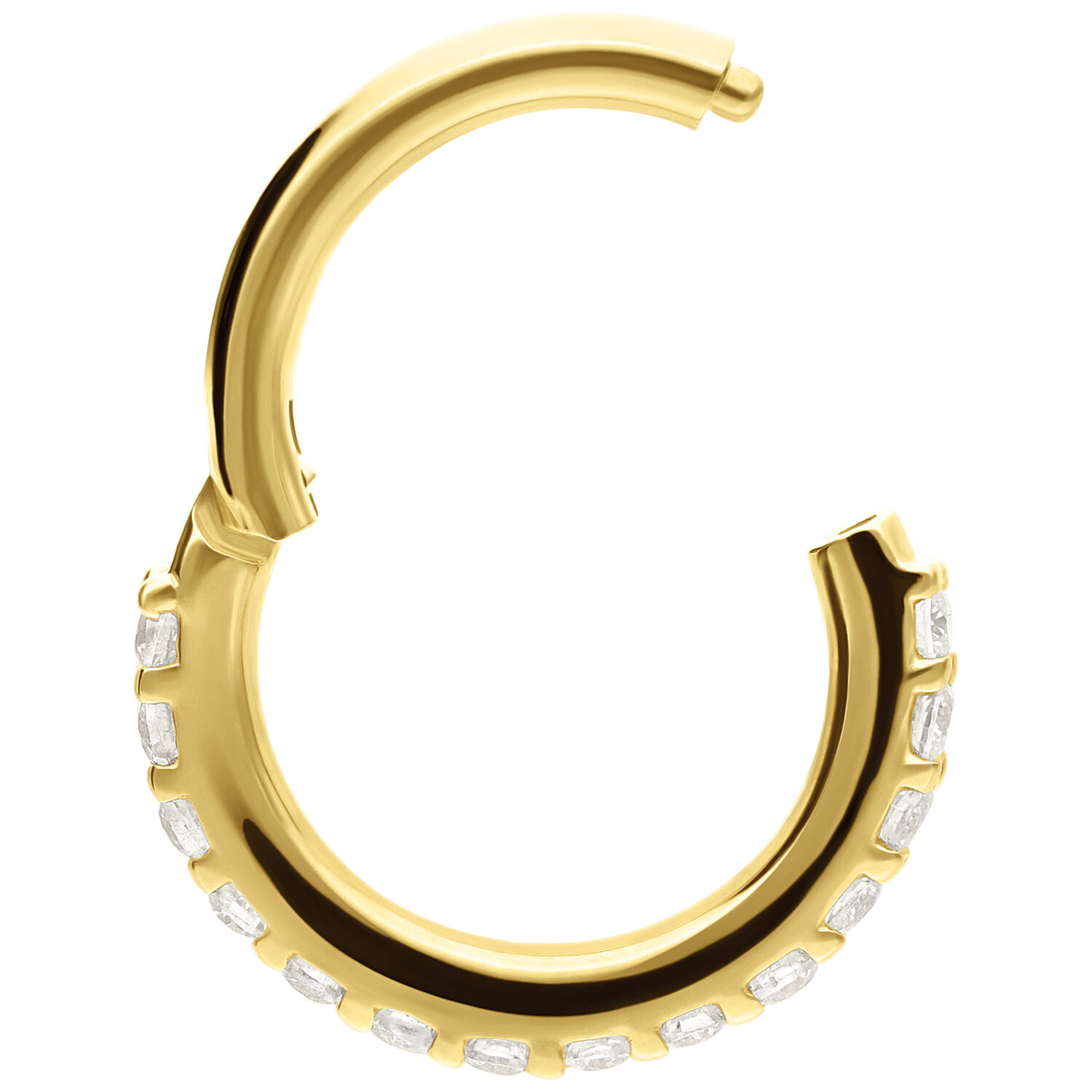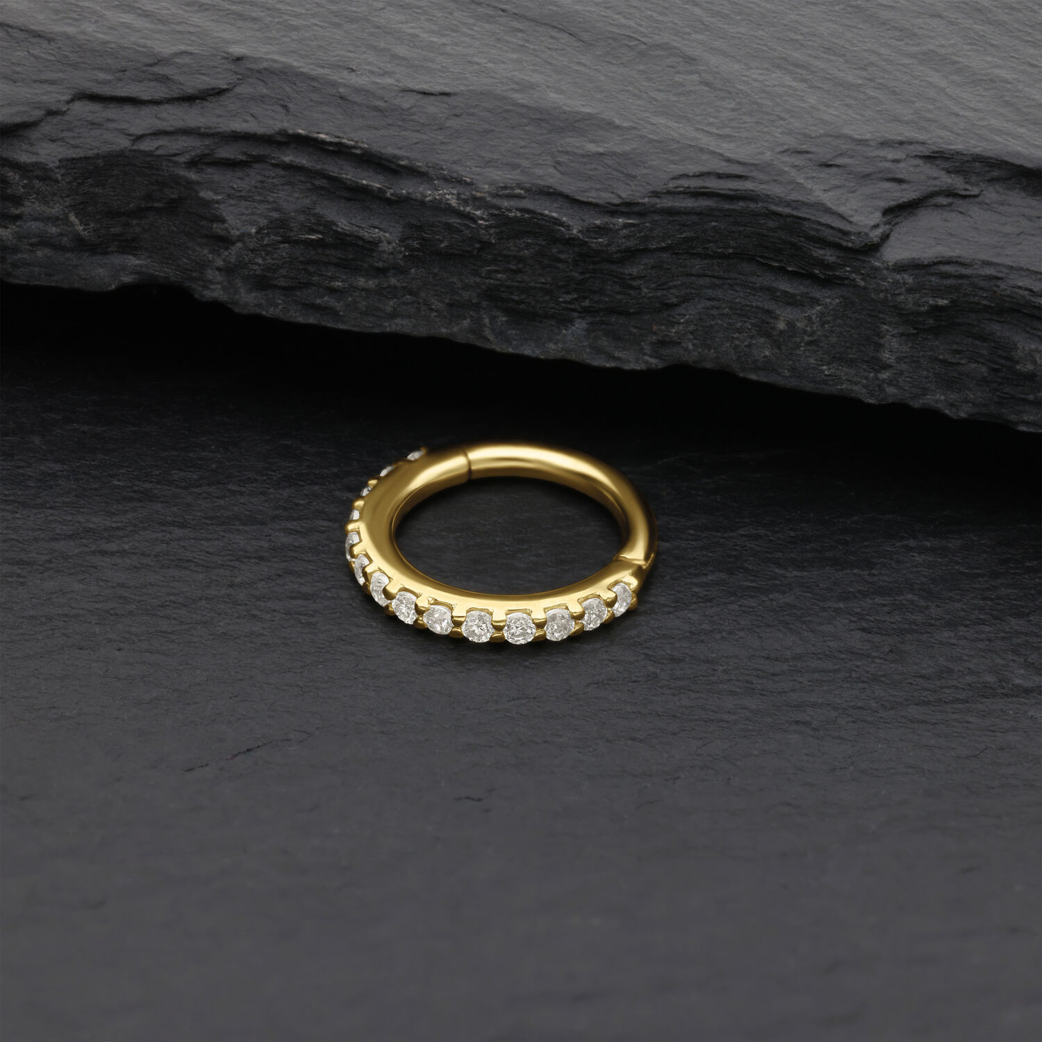 Gracias al práctico cierre con bisagra, el aro se coloca muy fácil y queda seguro. Con un grosor de 1,0 mm es ideal para el piercing nostril, pero también se puede llevar en otras zonas de piercings más finas, siempre con un acabado elegante y de alta calidad.