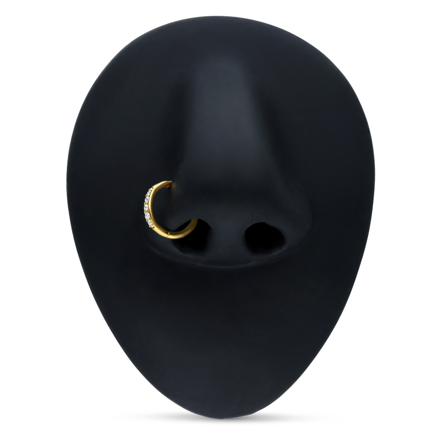 El anillo segmentado cuenta con un cierre de bisagra que facilita la colocación del piercing.