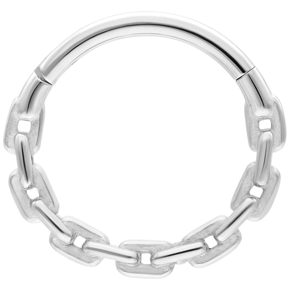 Además, el Anchor Chain Clicker se puede usar en muchas ubicaciones del cuerpo, ya sea en el conch, lóbulo o helix. ¡La decisión es tuya! Pero, independientemente de la ubicación que elijas, nuestro Anchor Chain Ring te cautivará en todos los casos, ¡y todo sin brillos!