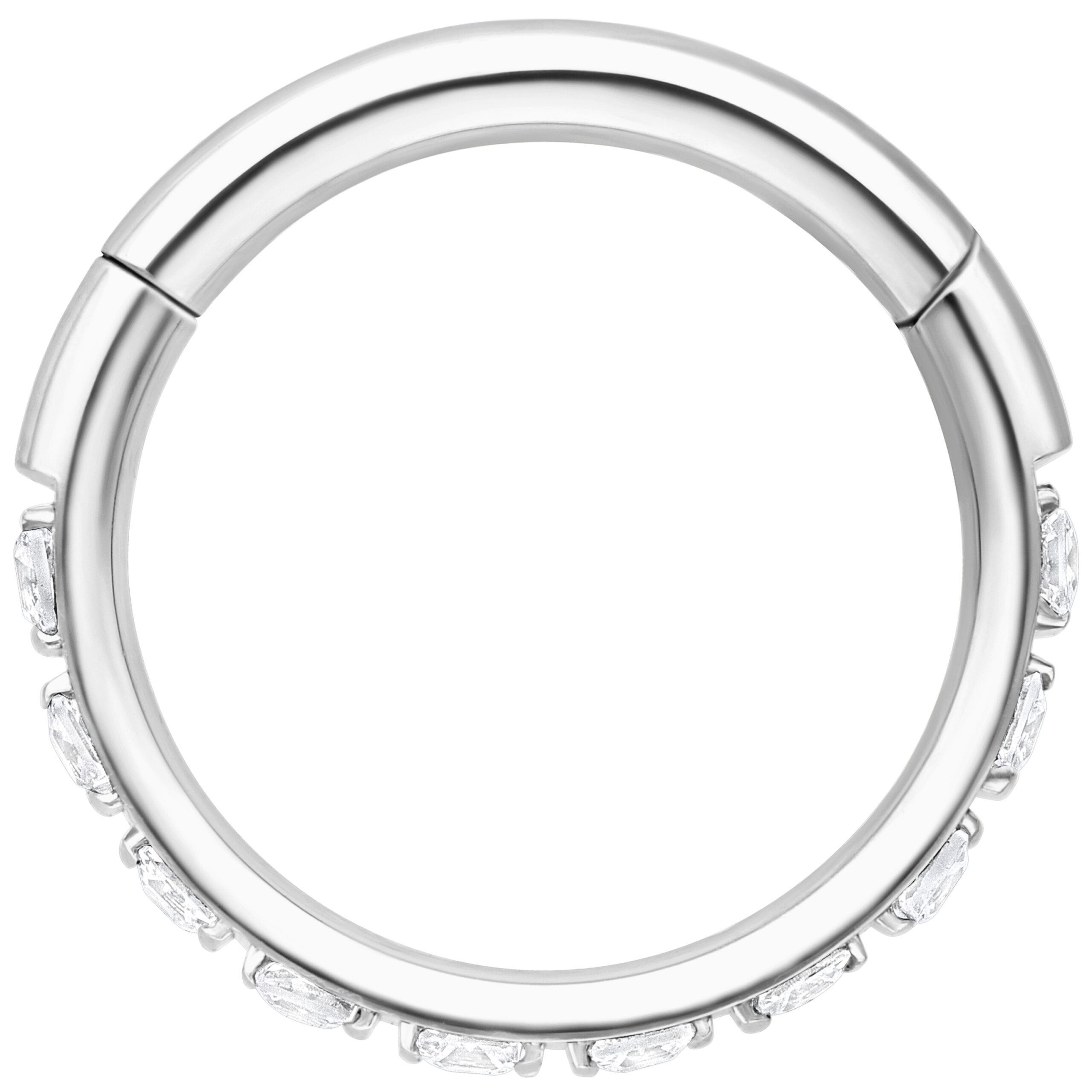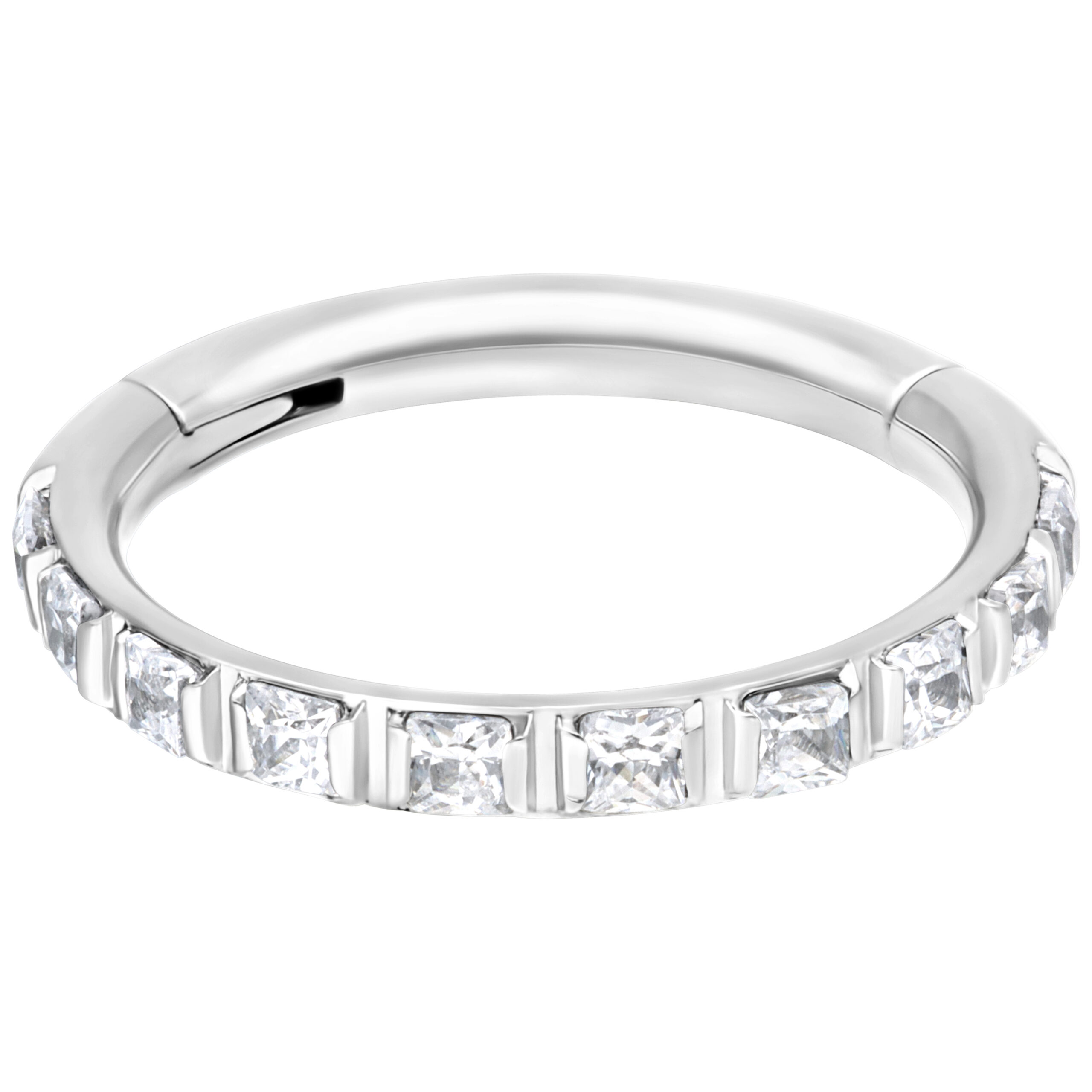 Nuestro elegante Angular Crystal Clicker se caracteriza por sus pequeños cristales cuadrados, lo que lo convierte en un verdadero atractivo para tu oreja. Deja volar tu creatividad, ya que puedes usar este anillo para casi cualquier piercing. Es especialmente adecuado para tu piercing en el lóbulo, helix y nariz. Gracias a su cierre abatible, es muy fácil cambiar tu piercing sin necesidad de ayuda.